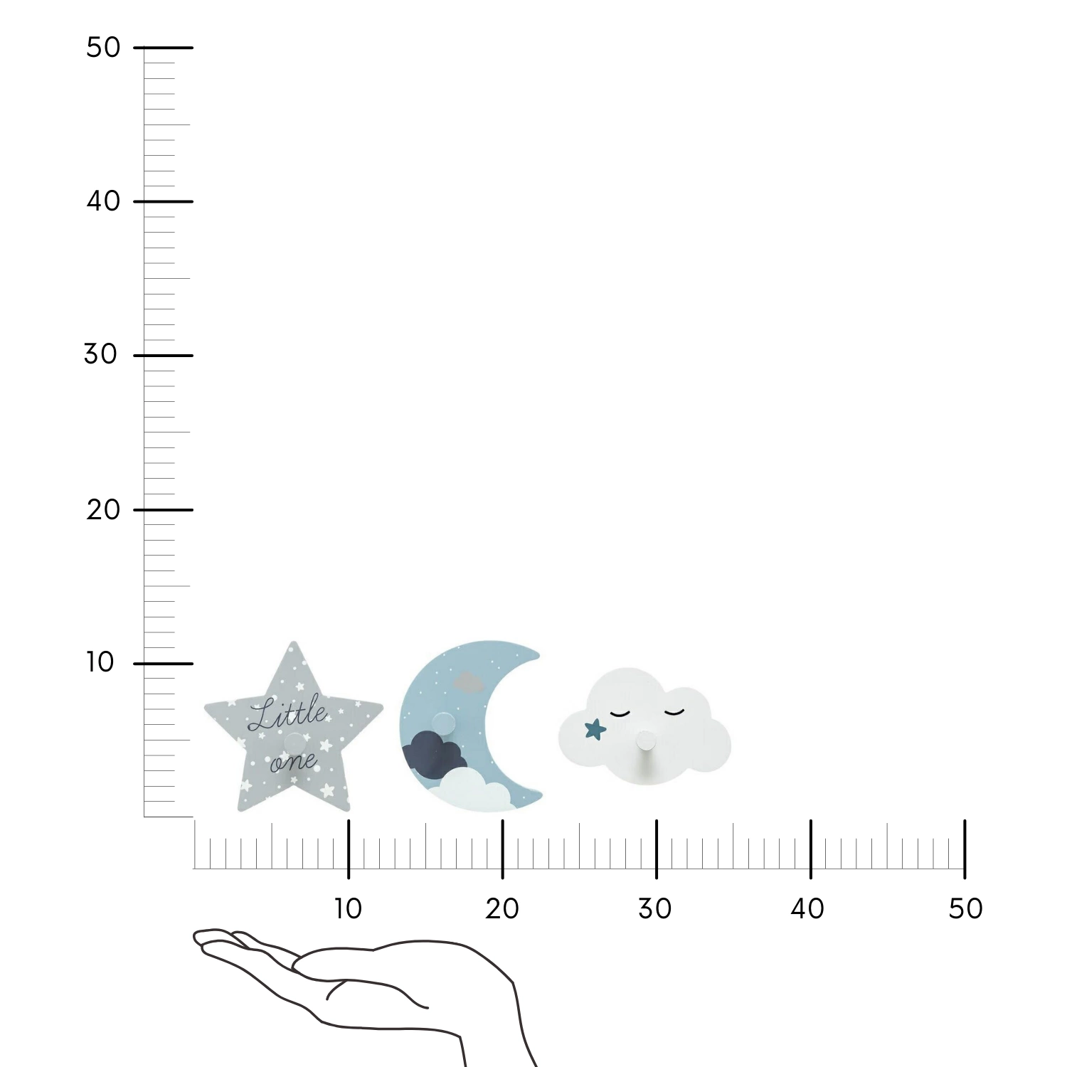Te trzy wyjątkowe wieszaki są idealnym rozwiązaniem dla porządku w sypialni dziecięcej. Zaprojektowane tak, aby pasowały do komody Atmosphera, zapewniają wygodny dostęp do ubrań dziecka, trzymając je w jednym miejscu i umożliwiając łatwy dostęp do nich. Każdy wieszak ma maksymalne obciążenie na 1 haczyk wynoszące 2 kg, co sprawia, że są one idealne do zawieszania lekkich ubrań, kapturków czy innych dodatków dziecięcych. Ich wymiary - chmura o szerokości 12 x głębokości 4 x wysokości 8,5 cm, księżyc o szerokości 9,2 x głębokości 4 x wysokości 11,5 cm oraz gwiazda o szerokości 1o x głębokości 4 x wysokości 11 cm - zapewniają zarówno funkcjonalność, jak i estetykę w przestrzeni dziecięcej.