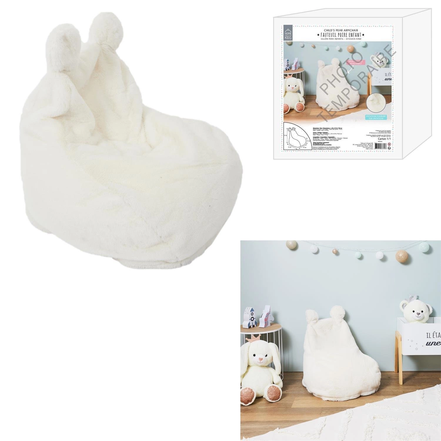 Pełen stylu i wygody fotel/pufa Lievre to idealny sposób na dodanie odrobiny magii do pokoju Twojego malucha. Miękki i pluszowy, ten rozkoszny projekt jest wykonany z materiału przypominającego futro, który z pewnością przyniesie wiele radości podczas zabawy. Uroczy i wesoły, posiada dwa białe pompony, które wyglądają jak uszy misia - co czyni go idealnym towarzyszem do przytulania!