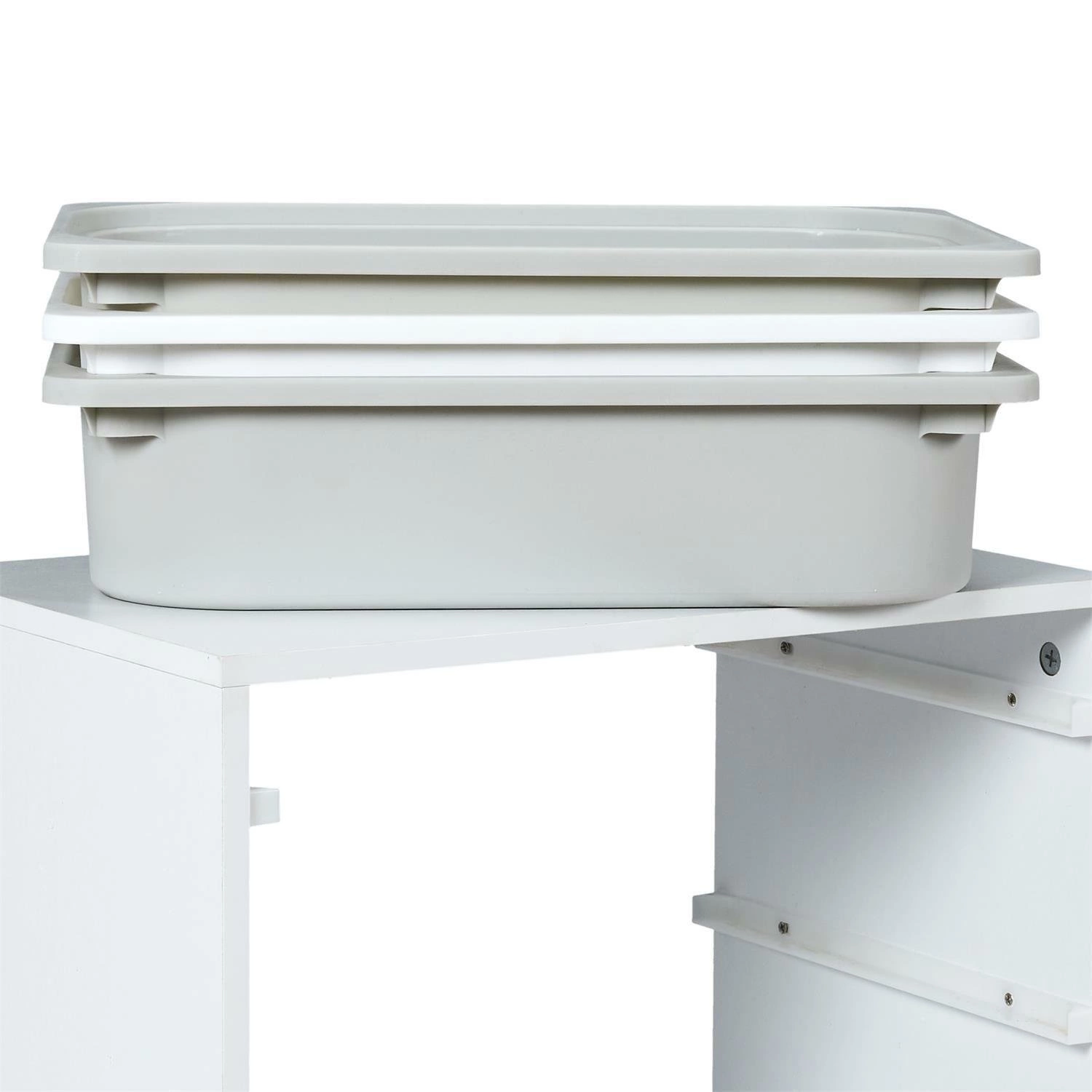 Przedstawiamy regał Elmo S do przechowywania w pokoju dziecięcym! Ultrafunkcjonalny mebel pozwala na przechowywanie zabawek, gier planszowych, pluszaków i innych przedmiotów w zorganizowany sposób. Biały korpus wykonany jest z płyty meblowej i wyposażony w dwa klasyczne białe pojemniki oraz jeden stylowy szary. Cechą szczególną jest to, że wszystkie pojemniki można z łatwością wyciągnąć. W dodatku cały regał waży tylko 11 kg i wymaga minimalnego montażu - mowa o wygodzie! Dzięki nowoczesnemu designowi utrzymaj porządek w pokoju swoich dzieci, jednocześnie zapewniając im przyjemną estetykę. Przygotuj się na stworzenie idealnego porządku w swoim domu z regałem magazynowym Elmo S już dziś!