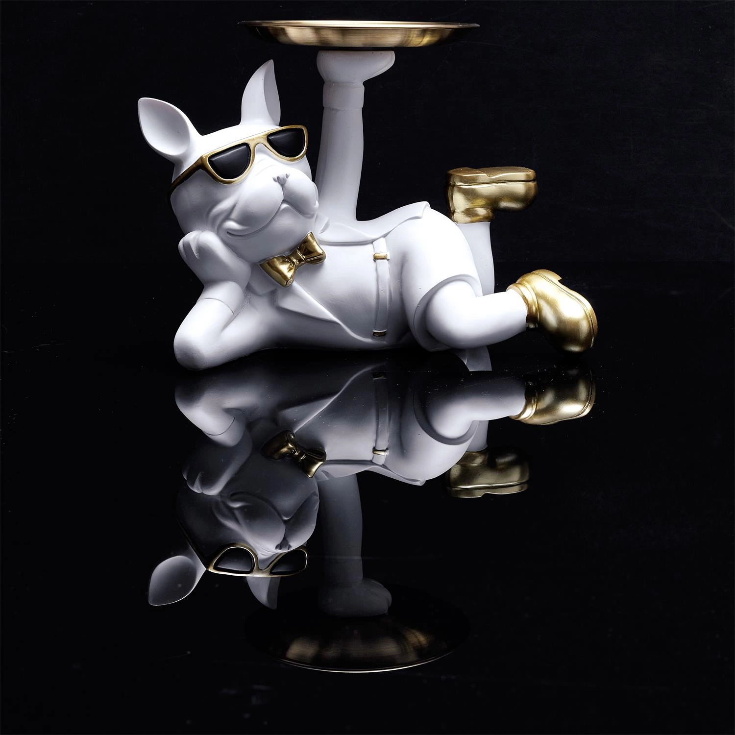Figurka dekoracyjna buldog z tacą świetnie sprawdzi się nie tylko w salonie, ale także w sypialni, przedpokoju, jadalni czy nawet pokoju młodzieżowym. Tacka, którą buldog prezentuje, to wygodne miejsce na klucze, biżuterię, drobiazgi lub słodycze – zawsze pod ręką, w eleganckiej formie. Możesz postawić ją na stoliku kawowym, komodzie lub konsoli, gdzie będzie nie tylko praktyczna, ale również przyciągnie uwagę gości.