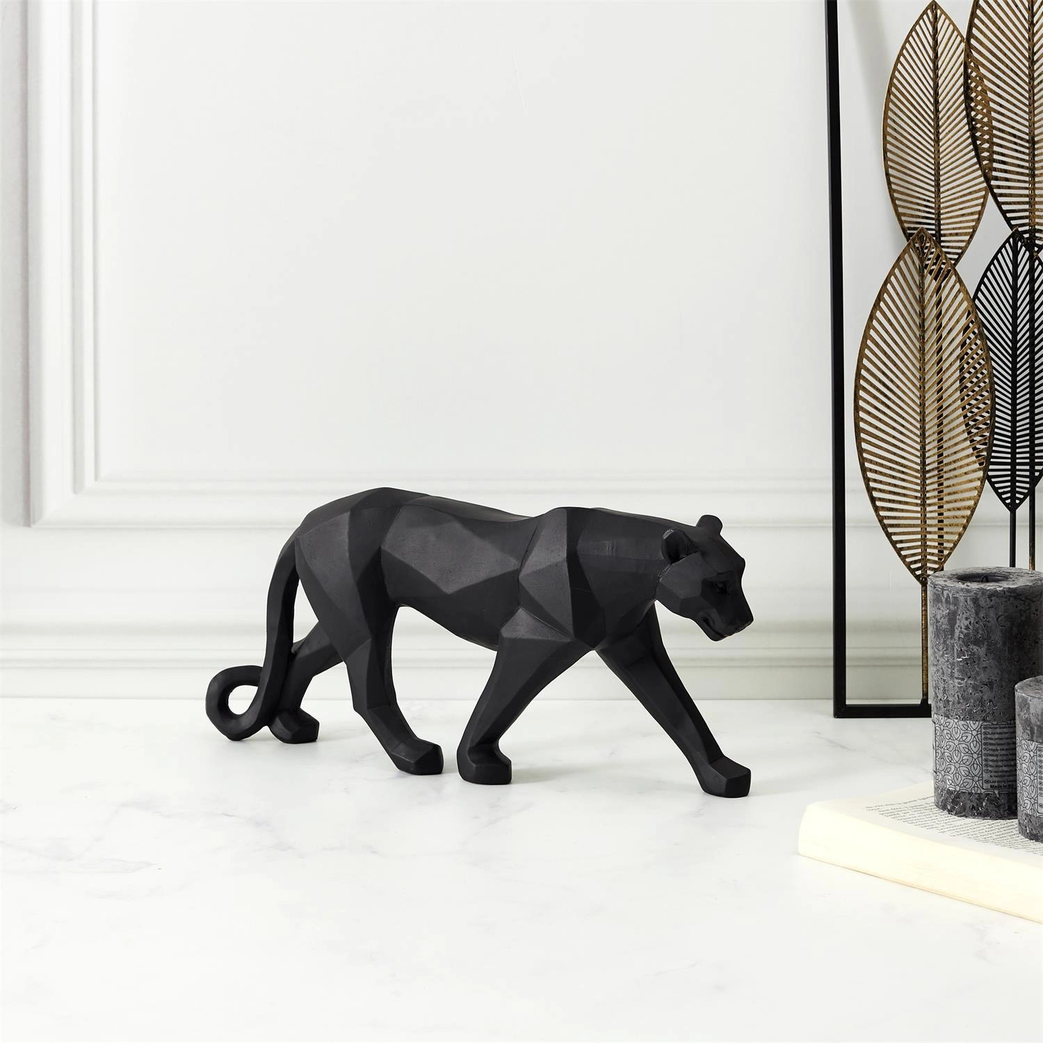 Figurka czarnej pantery to stylowa i nowoczesna dekoracja, inspirowana sztuką origami. Wykonana z trwałego tworzywa sztucznego, jest idealna do dodania charakteru do każdego pomieszczenia.