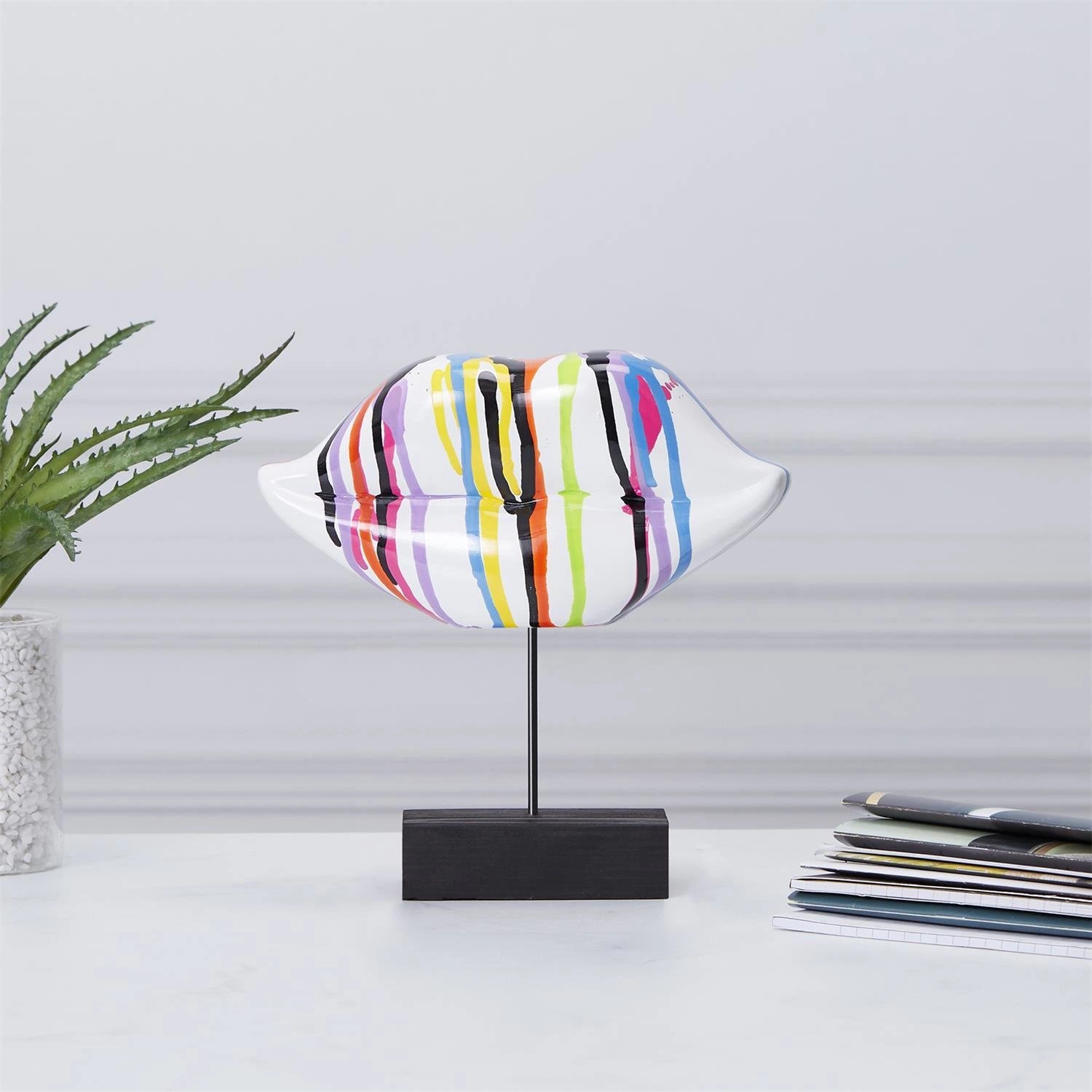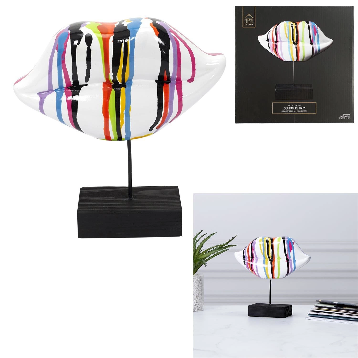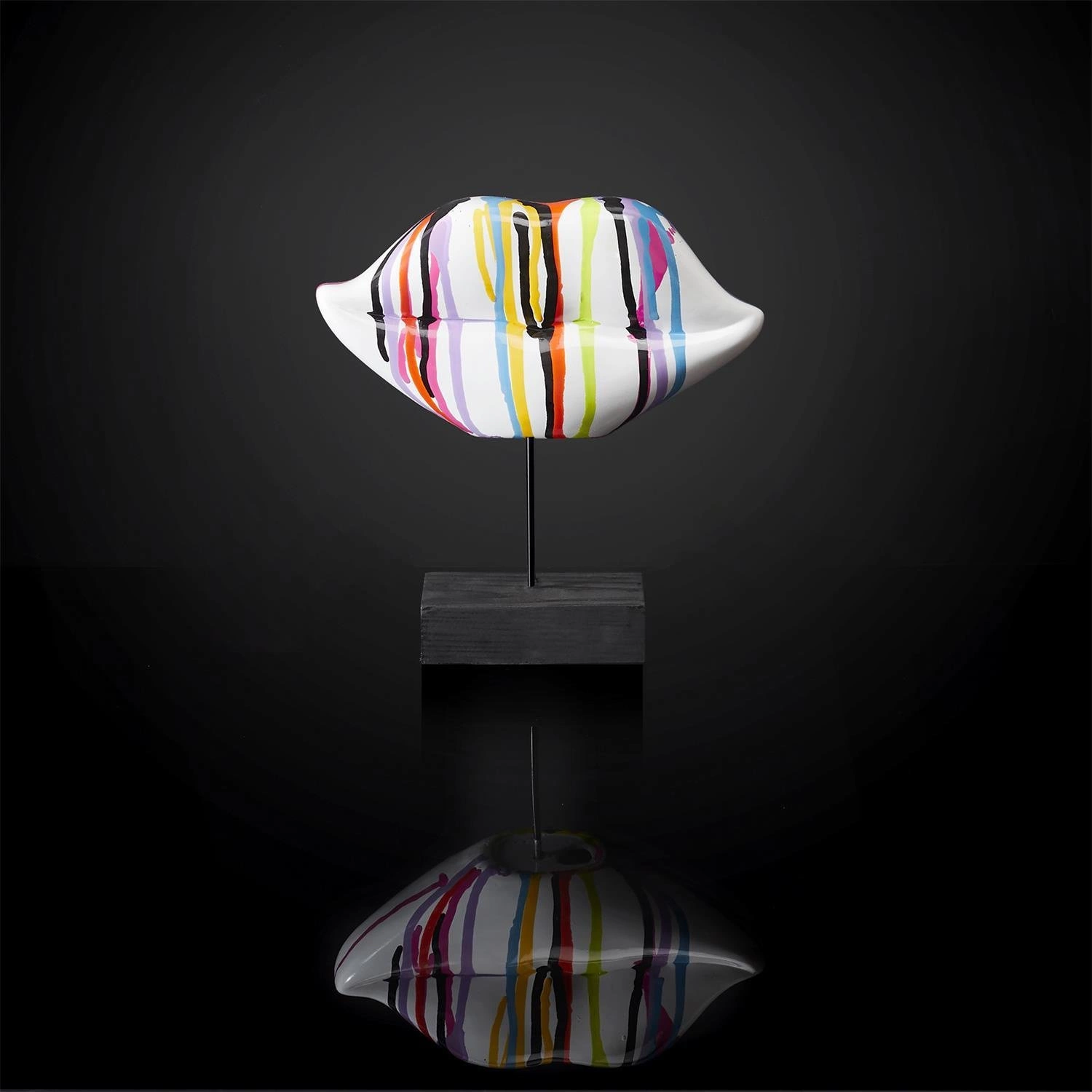 Figurka dekoracyjna Usta marki Intesi to nowoczesna ozdoba ceramiczna o wymiarach 10,5 × 19,5 × 6 cm, wyróżniająca się wielobarwnym wykończeniem i designerską formą inspirowaną pop-artem. Umieszczona na eleganckiej podstawie z drewna i metalu, przyciąga wzrok oryginalnym kształtem ust, stanowiąc efektowny akcent dekoracyjny do salonu, sypialni lub nowoczesnego biura. To propozycja zarówno dla miłośników wyrazistych dodatków, jak i osób szukających nietuzinkowego pomysłu na prezent.