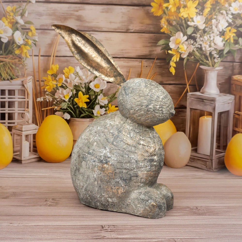 Figurka wielkanocna Królik Intesi 38 cm to wyjątkowa dekoracja stojąca, która wnosi do wnętrza subtelny akcent wiosennego klimatu. Wykonana z trwałej żywicy w eleganckim, szarym kolorze, stanowi efektowne uzupełnienie aranżacji salonu, jadalni czy przedpokoju. Dzięki imponującej wysokości 38 cm oraz proporcjom (36 cm szerokości i 25 cm głębokości), ta figurka zająca skutecznie przyciąga wzrok i znakomicie prezentuje się zarówno na stole, jak i na komodzie.
