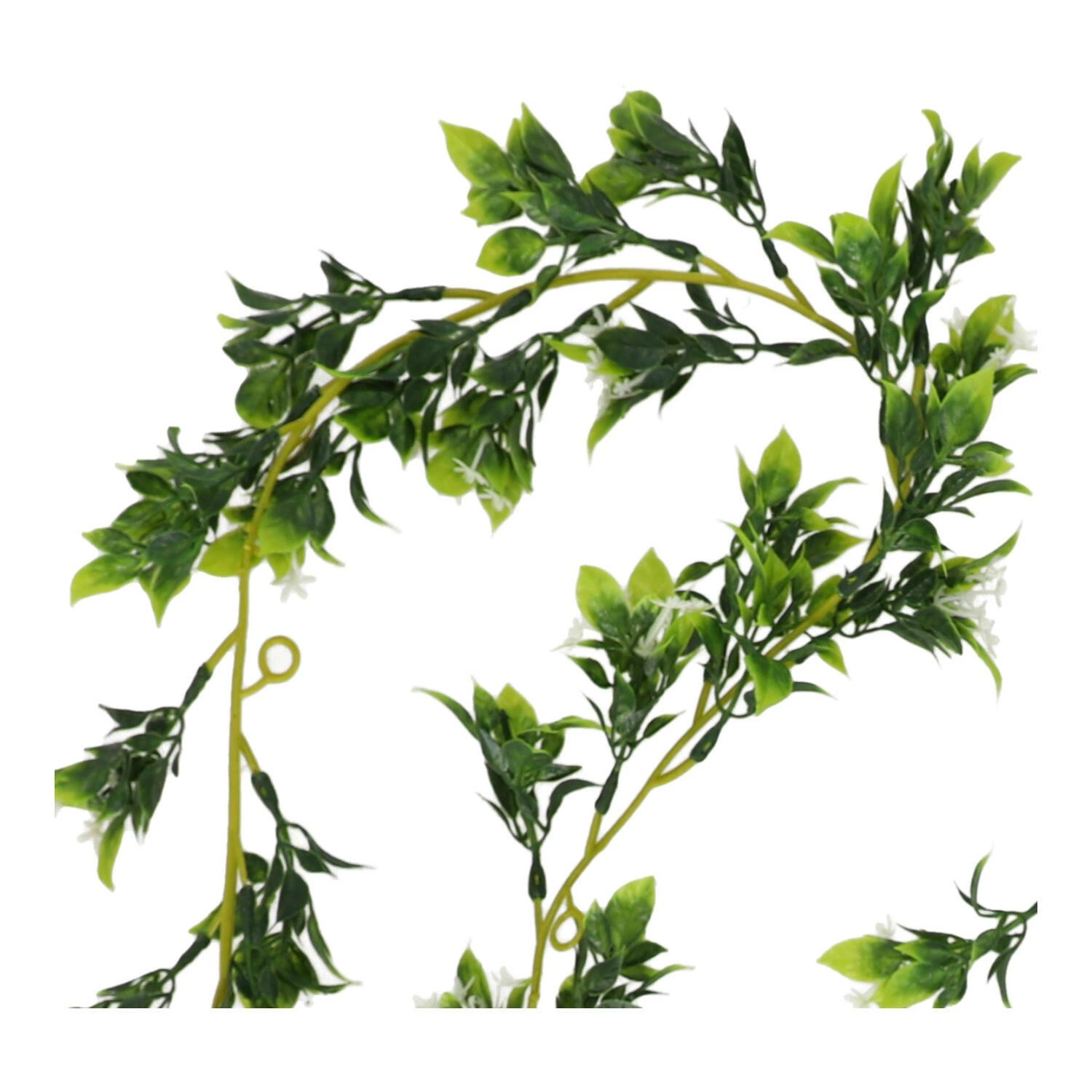 Delikatne białe kwiaty i jasnozielone liście doskonale wpisują się w nowoczesny styl, nadając przestrzeni lekkości i świeżości. Girlanda świetnie sprawdzi się jako sztuczne kwiaty do salonu, sypialni czy przedpokoju, ale także jako odporna na warunki zewnętrzne dekoracja balkonu lub tarasu. Dzięki elastycznej konstrukcji łatwo ją dopasować do wybranej powierzchni czy kształtu, tworząc indywidualne kompozycje według własnych upodobań.