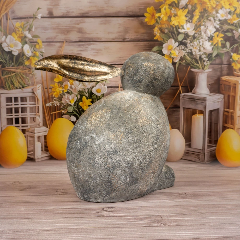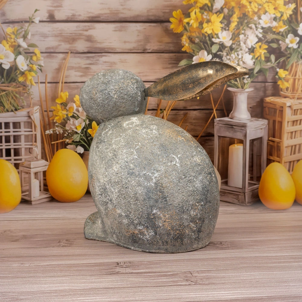 Dzięki dużym wymiarom oraz stabilnej podstawie, figurka zając sprawdzi się jako centralna ozdoba na stole wielkanocnym, efektowny element na komodzie w salonie lub przyciągający uwagę akcent na parapecie. Możesz także wykorzystać ją w jadalni, gabinecie czy kawiarni, dodając przestrzeni świeżości i świątecznego uroku. Dekoracja odporna na warunki zewnętrzne, co pozwala ustawić ją także na zadaszonym tarasie lub balkonie.