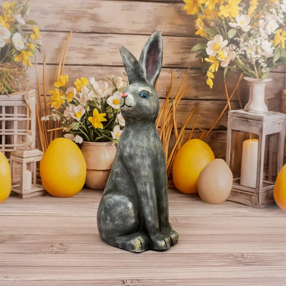 Figurka wielkanocna siedzący zając 55 cm marki Intesi to dekoracja, która wprowadzi do Twojego domu prawdziwie świąteczny nastrój. Wykonana z wytrzymałej żywicy dekoracyjnej w odcieniu szarości, zachwyca subtelnym wykończeniem i dużym rozmiarem, dzięki czemu stanowi efektowny akcent zarówno na stole, jak i w salonie. Owalny kształt oraz minimalistyczna forma sprawiają, że doskonale wpisuje się w nowoczesne i klasyczne aranżacje wnętrz.