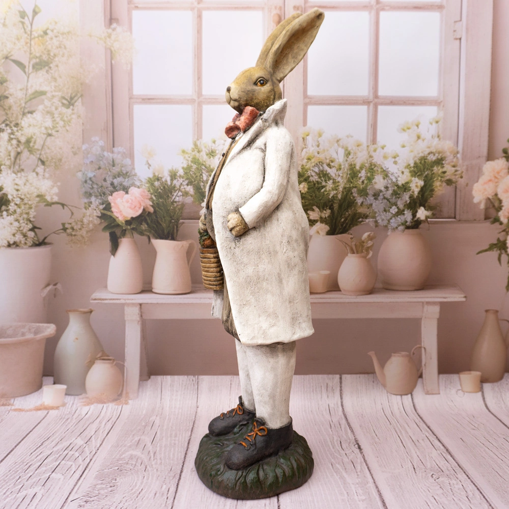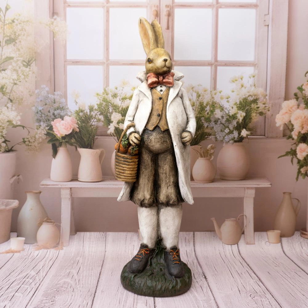 Zając we fraku marki Intesi to nie tylko dekoracja, ale również symbol radosnego, rodzinnego świętowania. Jego obecność na komodzie czy w salonie sprawia, że dom staje się bardziej przytulny i przygotowany na przyjęcie gości. Jeśli poszukujesz dużej figurki wielkanocnej, która łączy elegancję z solidnością wykonania, ten model będzie idealnym wyborem na lata.