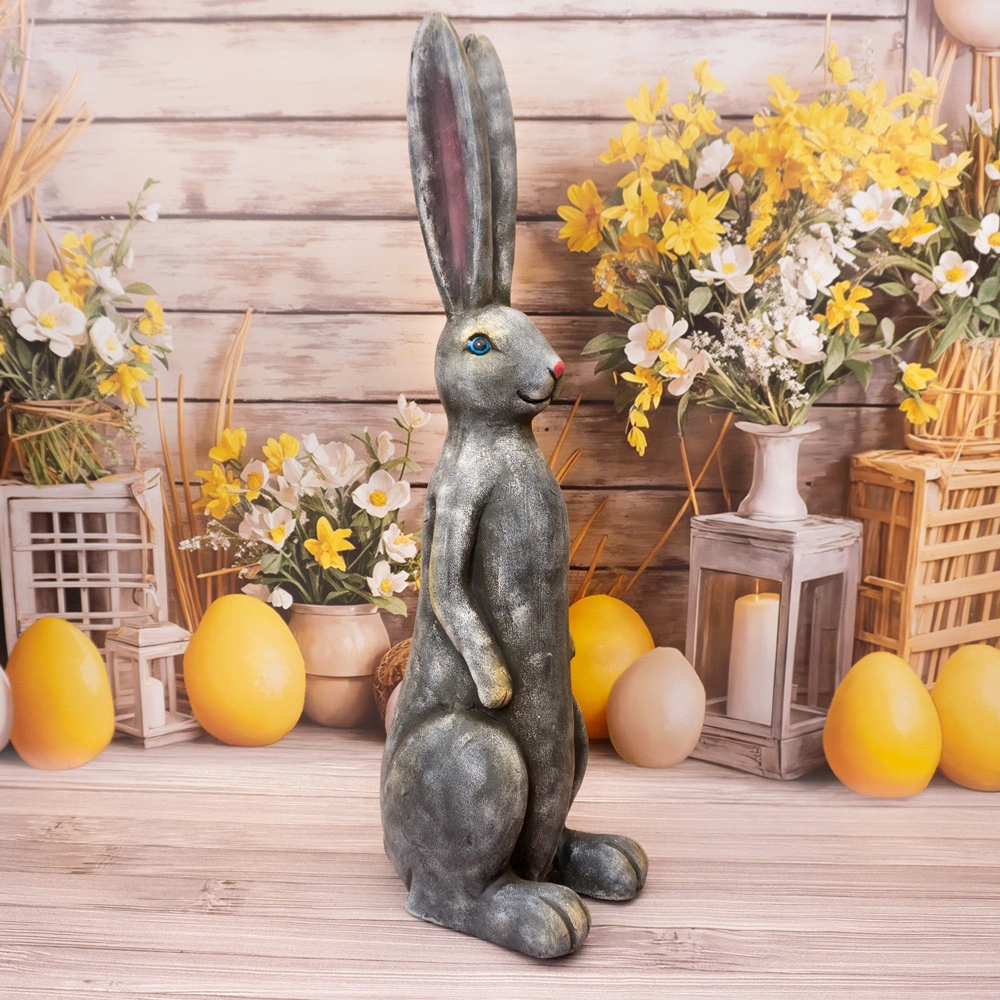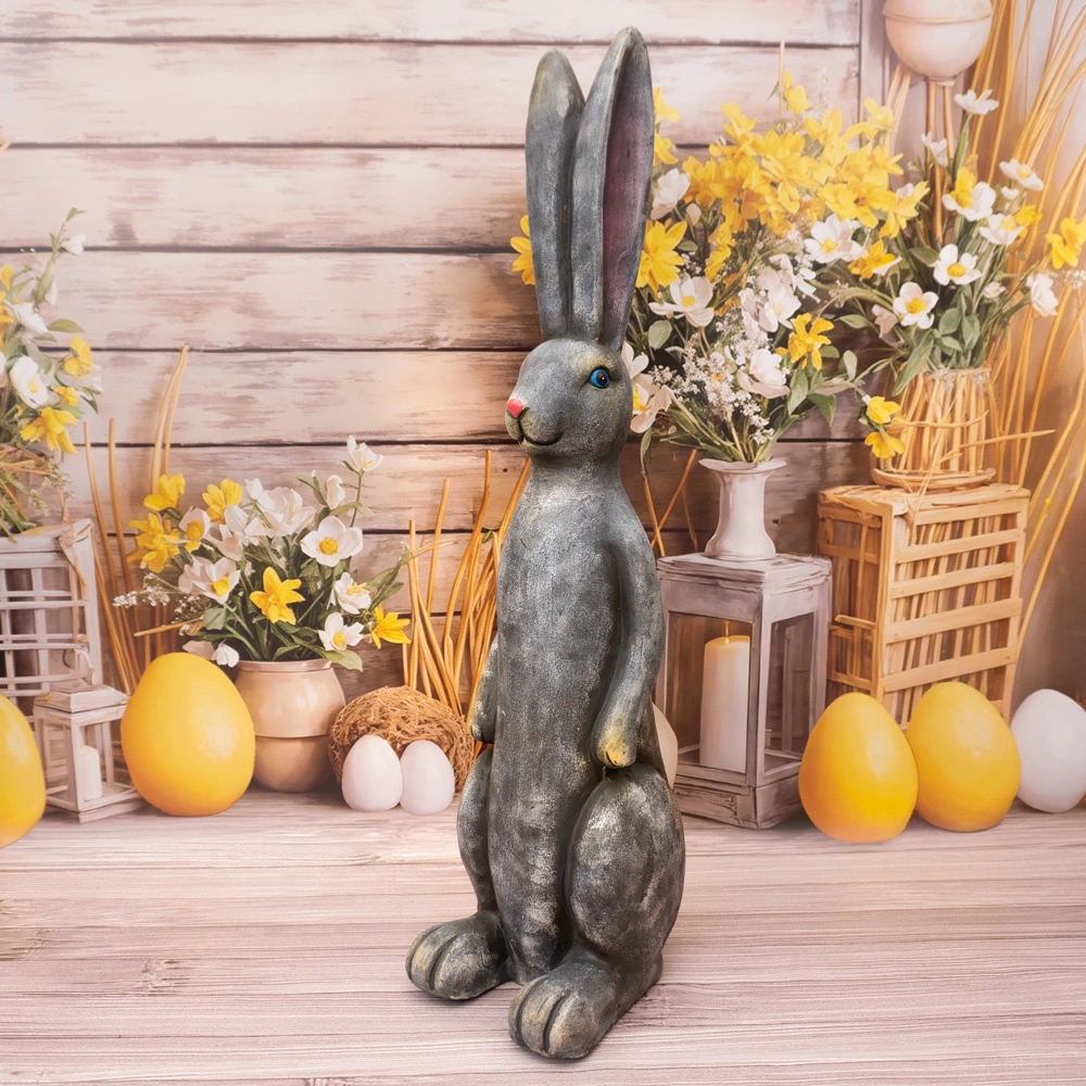 Figurka wielkanocna zając wysoki Intesi to nowoczesna dekoracja o imponującej wysokości 81 cm, wykonana z trwałej żywicy poliestrowej w eleganckim szarym kolorze. Dzięki minimalistycznej formie i uniwersalnej kolorystyce stanowi wyrazisty akcent do salonu, jadalni czy na wielkanocny stół. Duży rozmiar sprawia, że zając przyciąga wzrok i staje się centralnym punktem świątecznej aranżacji, zarówno we wnętrzach, jak i na zadaszonym tarasie.