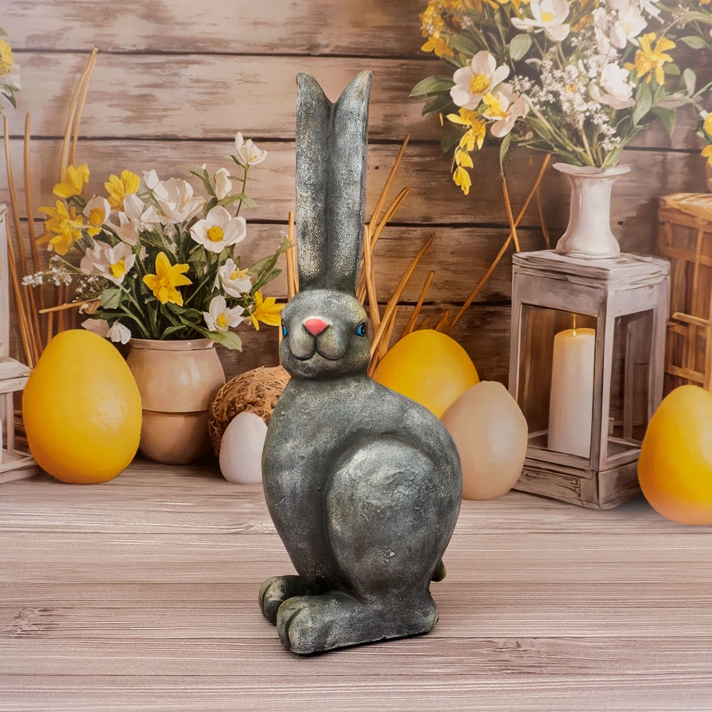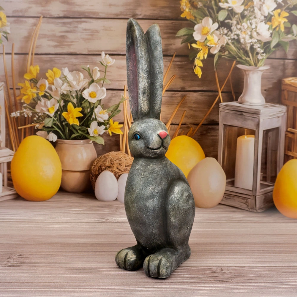 Wybierając tę dużą figurkę wielkanocną, zyskujesz ponadczasową ozdobę, która nie tylko podkreśli wyjątkowy nastrój świąt, ale również doda elegancji każdej domowej czy komercyjnej przestrzeni. Solidne wykonanie gwarantuje trwałość na lata, a szary kolor wprowadza do wnętrza spokój i harmonię. To dekoracja, która z łatwością stanie się ulubionym akcentem Twojego domu podczas Wielkanocy i nie tylko.