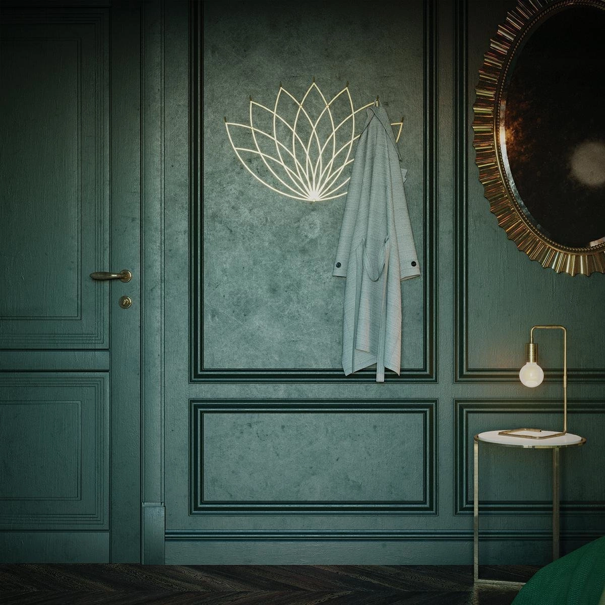 Piękno, czystość, doskonałość. Zawsze nieskazitelny gdy kwitnie pośród bagien, symbolizujący odrodzenie i triumf wytrwałości – kwiat lotosu. Odkryj wieszaki z serii Lotos i wprowadź harmonię do swoich wnętrz. Wycinany laserowo, stalowy, malowany proszkowo. Waga: 1,1kg