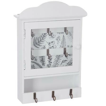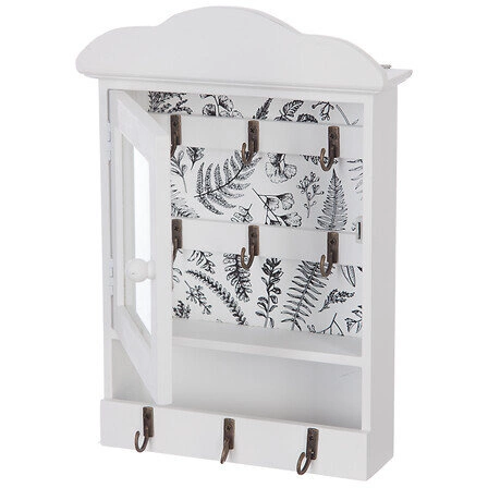 Jeżeli często zdarza Ci się szukać kluczy, ten elegancki organizer/szafka na klucze w kolorze białym stworzony przez markę Atmosphera jest idealnym rozwiązaniem. Wykonany z solidnej płyty MDF, wytrzymałego szkła i metalu, jest nie tylko funkcjonalny, ale także dodaje uroku każdemu wnętrzu. Z łatwością pomieści wszystkie Twoje klucze, dzięki trzem zewnętrznym haczykom na klucze, które często używasz, oraz sześciu wewnętrznym haczykom schowanym za szklanym frontem.