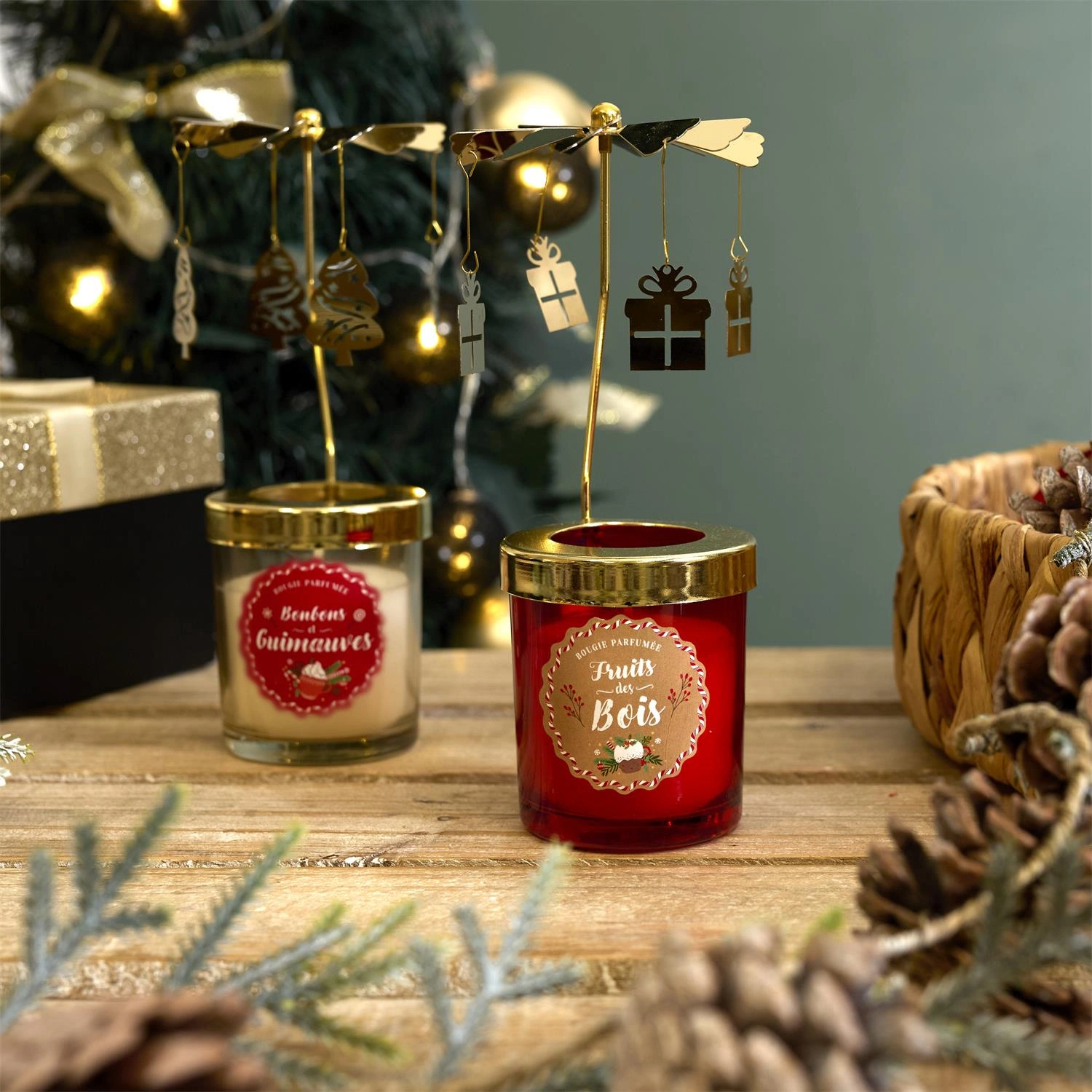 Ta dekoracja bożonarodzeniowa nie tylko pięknie pachnie, ale również zachwyca ruchem – metalowa, złota karuzela obraca się pod wpływem ciepła płomienia, tworząc unikalny efekt wizualny i dodając wnętrzu magicznego charakteru. Czerwony kolor świecy doskonale wpisuje się w tradycyjną, świąteczną kolorystykę i podkreśla ciepły, przytulny klimat świąt. Dzięki starannie dobranym materiałom – szkłu, metalowi i woskowi – produkt prezentuje się niezwykle elegancko na świątecznym stole, komodzie lub parapecie.