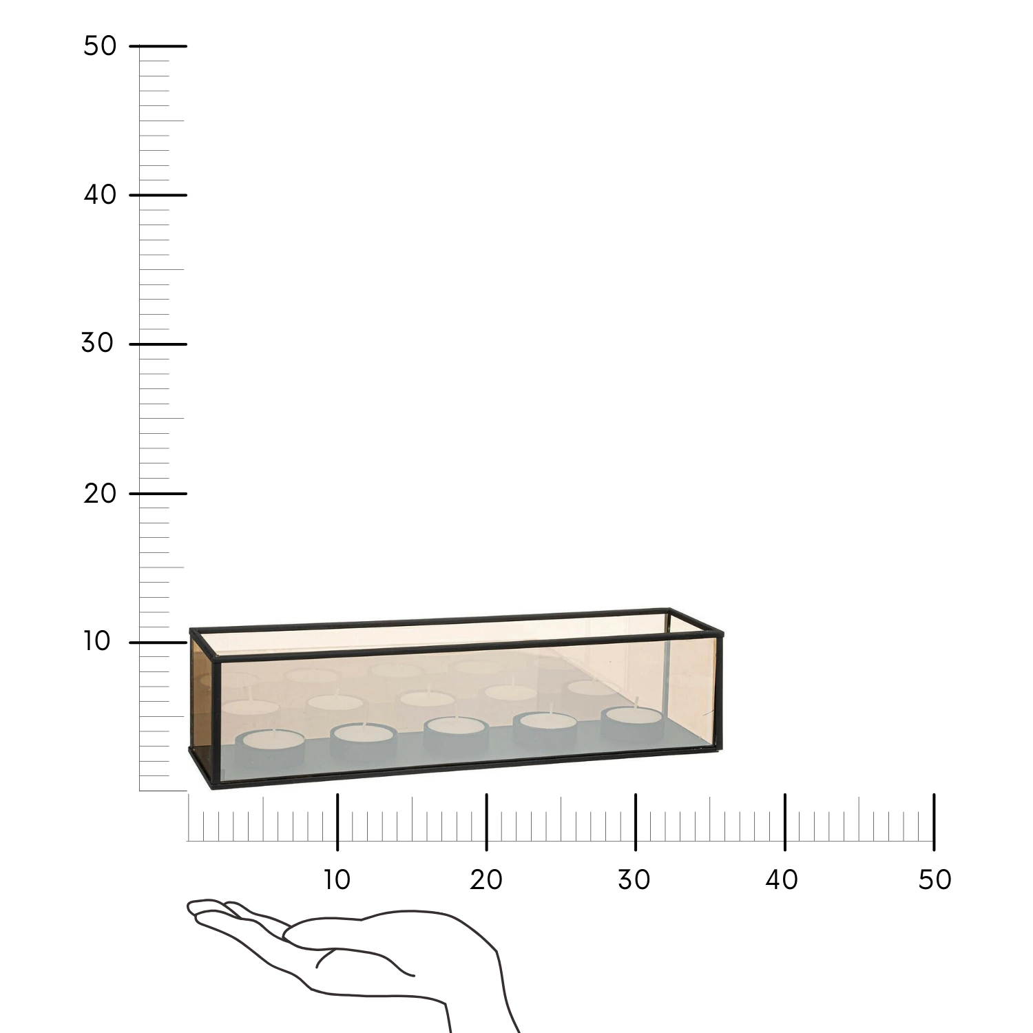 Świecznik Infini: Twój klucz do wyjątkowej atmosfery Świecznik Infini to doskonała kombinacja elegancji i nowoczesności, która doda wyjątkowego uroku Twojemu wnętrzu. Ten wyjątkowy świecznik to nie tylko źródło romantycznego oświetlenia, ale również designerski element dekoracyjny, który wprowadzi do Twojego domu niepowtarzalny klimat. Główną część świecznika stanowi prostokątny pojemnik wykonany z wysokiej jakości szkła i metalu, który nie tylko nadaje mu solidnej struktury, ale także zapewnia stabilność. W środku tego eleganckiego pojemnika znajduje się pięć miejsc na świeczki Tealight, które po zapaleniu tworzą delikatny, ciepły blask, idealny do relaksu i tworzenia przytulnej atmosfery. Możesz umieścić go na kredensie z ciemnego drewna Atmosphera, tworząc harmonijne połączenie materiałów i dodając wnętrzu nowoczesny, industrialny charakter. O tym warto pamiętać! Wykonany z trwałej parafiny, solidnego żelaza i eleganckiego szkła, ten świecznik zapewnia nie tylko wyjątkowy wygląd, ale także trwałość na lata. Dzięki pięciu miejscom na świeczki możesz cieszyć się jeszcze intensywniejszym oświetleniem i magią płomieni. Świecznik doskonale wpisuje się w trendy wnętrzarskie, dodając pomieszczeniu oryginalności i charakteru. Jest łatwy w utrzymaniu czystości i konserwacji, co sprawia, że będzie służył Ci przez wiele sezonów. Nadaje się do różnych wnętrz, od salonu po sypialnię czy jadalnię, tworząc przytulną atmosferę o każdej porze roku.