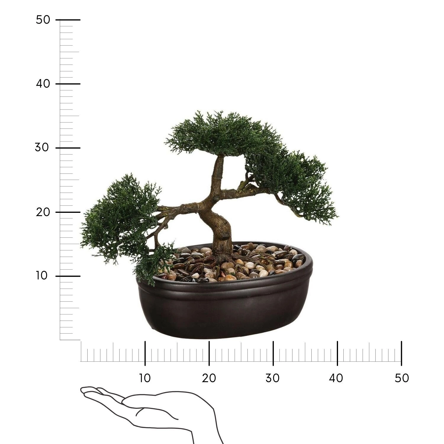 Witamy w świecie stylu i elegancji dzięki sztucznemu drzewku Bonsai od Atmosphera! To drzewko o wysokości 23 cm jest idealnym sposobem, aby wprowadzić odrobinę orientalnego stylu do każdego pomieszczenia. Dzięki bujnym, zielonym liściom i uroczym, szkliwionym ceramicznym doniczkom z mchem i kamykami z piaskowca u podstawy, to bonsai na pewno przyciągnie uwagę jako dodatek do Twojego wystroju.