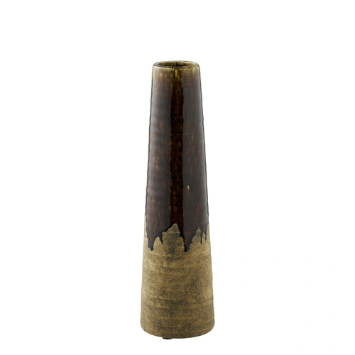 Wazon ceramiczny Cali marki House Nordic to wysoki, brązowy wazon dekoracyjny o wysokości 39 cm, zaprojektowany z myślą o ekspozycji kwiatów ciętych i traw dekoracyjnych w nowoczesnym salonie. Smukła forma o okrągłej podstawie i kompaktowej średnicy 11 cm sprawia, że łatwo ustawisz go na komodzie, konsoli w przedpokoju czy stole w jadalni, bez ryzyka przytłoczenia aranżacji.