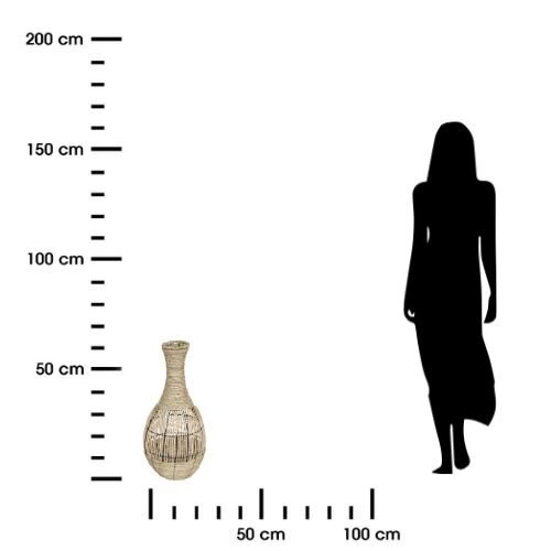 Wysoki wazon podłogowy wykonany z rattanu to świetna alternatywa dla tradycyjnych szklanych czy ceramicznych modeli. Lekka, a zarazem stabilna konstrukcja sprawia, że łatwo go przestawiać, by odmienić aranżację zgodnie z sezonem lub nastrojem. Naturalny rattan oraz włókno kukurydzy są przyjazne środowisku i doskonale wpisują się w trend świadomego urządzania wnętrz. Ten wazon dekoracyjny nie wymaga wody – jest przeznaczony do suchych aranżacji, dzięki czemu nie musisz martwić się o codzienną pielęgnację.