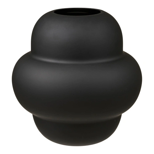 Wazon Karb marki House Nordic to czarny, okrągły wazon szklany o wysokości 20 cm i średnicy 21 cm, zaprojektowany jako nowoczesna dekoracja do salonu, jadalni czy przedpokoju. Subtelne karbowania na powierzchni szkła tworzą ciekawą grę światła, dzięki czemu wazon równie efektownie prezentuje się z kwiatami, jak i solo jako rzeźbiarska ozdoba komody lub stołu.