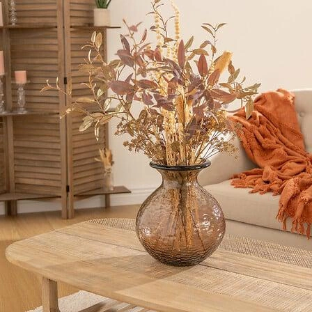 Wazon szklany Alric to propozycja dla osób ceniących minimalistyczne, a zarazem wyraziste dodatki do wnętrz. Brązowe szkło wprowadza do pomieszczenia ciepło i przytulność, doskonale komponując się z aranżacją w stylu nowoczesnym czy boho. Okrągły kształt oraz harmonijne proporcje (33 cm wysokości, 29 cm średnicy) pozwalają na pełną swobodę w doborze kompozycji – od klasycznych róż po modne trawy pampasowe.
