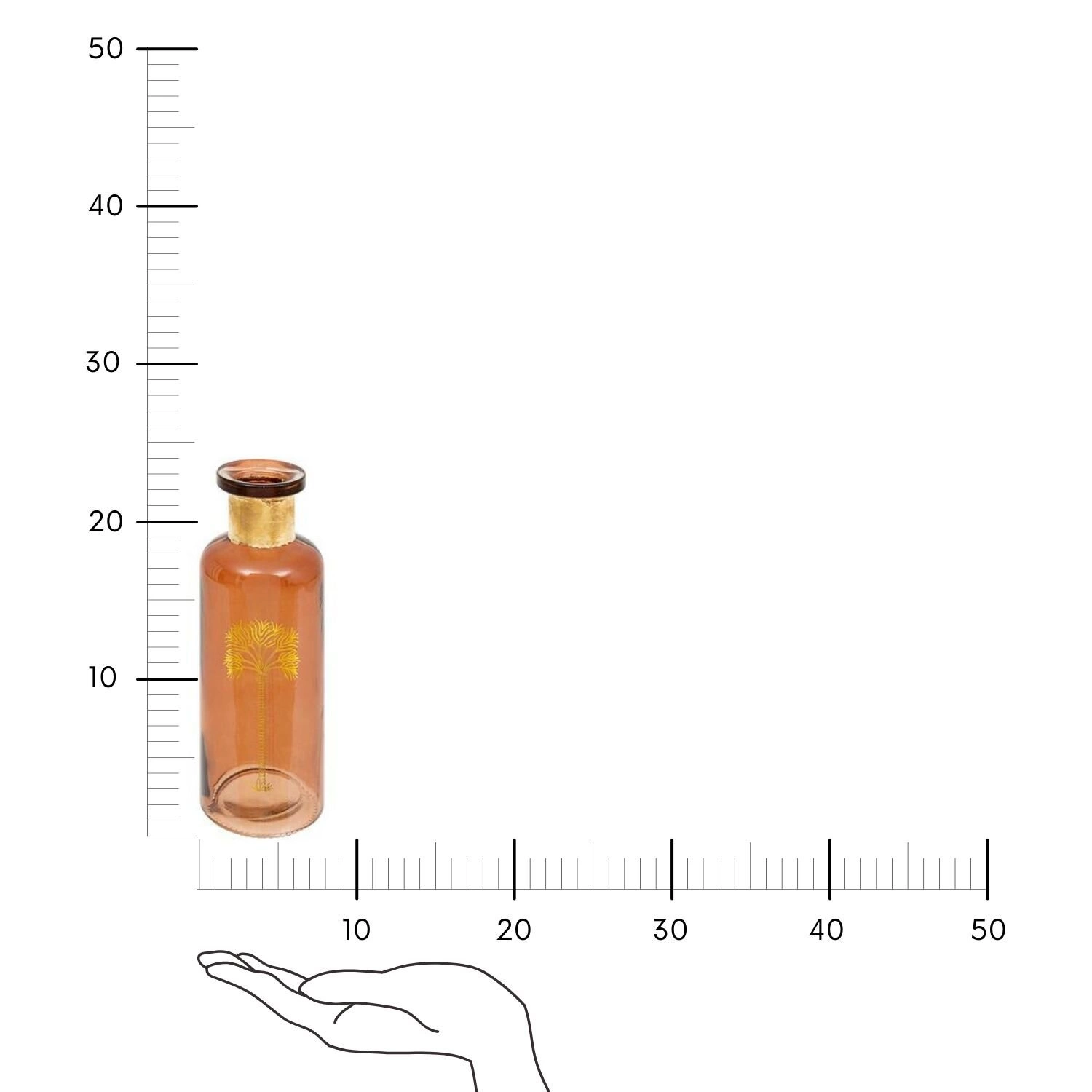Wazon szklany Tropical Boudoir to nie tylko praktyczny pojemnik na kwiaty, ale przede wszystkim wyrazisty element dekoracyjny. Bursztynowy kolor szkła pięknie współgra z modnymi aranżacjami, a złote detale na szyjce i na boku dodają mu blasku i elegancji. Dzięki kompaktowym wymiarom (7,6 × 7,6 × 21,9 cm) wazon idealnie prezentuje się na stole, komodzie lub parapecie, tworząc wyjątkowy klimat zarówno w domowym salonie, jak i w stylowej kawiarni czy biurze.
