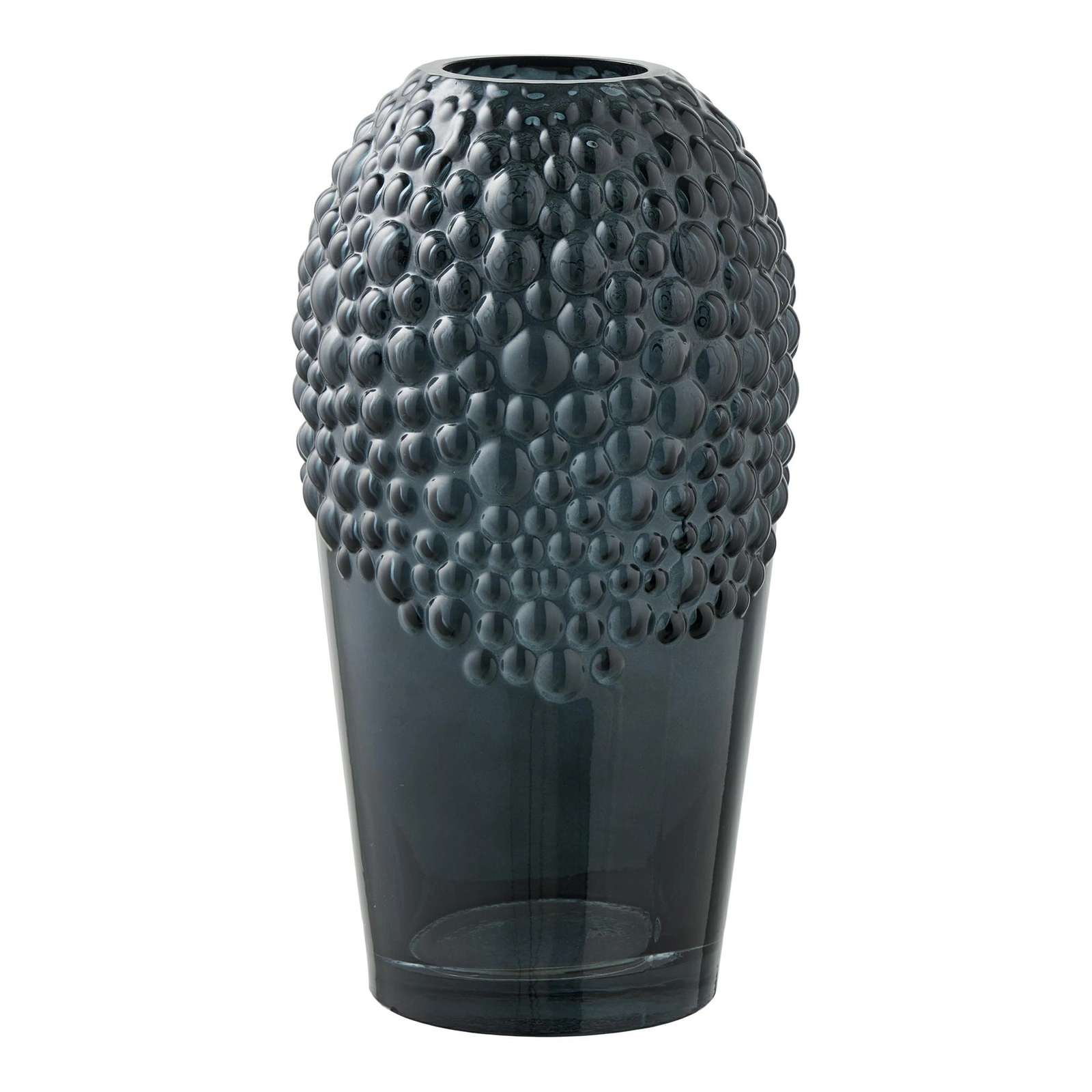 Wazon szklany Gron 25 cm marki House Nordic ApS to elegancki, ciemnoszary wazon na kwiaty, który łączy nowoczesny minimalizm z wyrazistą formą. Wykonany z grubego, barwionego szkła o okrągłej podstawie i wysokości 25 cm, idealnie sprawdzi się jako wazon dekoracyjny do salonu, jadalni czy gabinetu.