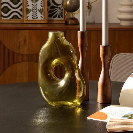 Wazon szklany Kaki żółty marki Atmosphera to nowoczesny, dekoracyjny akcent o wysokości 25 cm, który wyróżnia się nieregularnym kształtem i intensywną, słoneczną barwą. Wykonany ze szkła, doskonale sprawdzi się jako wazon na kwiaty w salonie, sypialni czy jadalni, nadając wnętrzu świeżości i przyciągając wzrok nietuzinkowym designem. Jego oryginalna forma oraz głęboki żółty kolor pozwalają urozmaicić każdą aranżację, czyniąc z niego zarówno praktyczny, jak i dekoracyjny element wyposażenia.