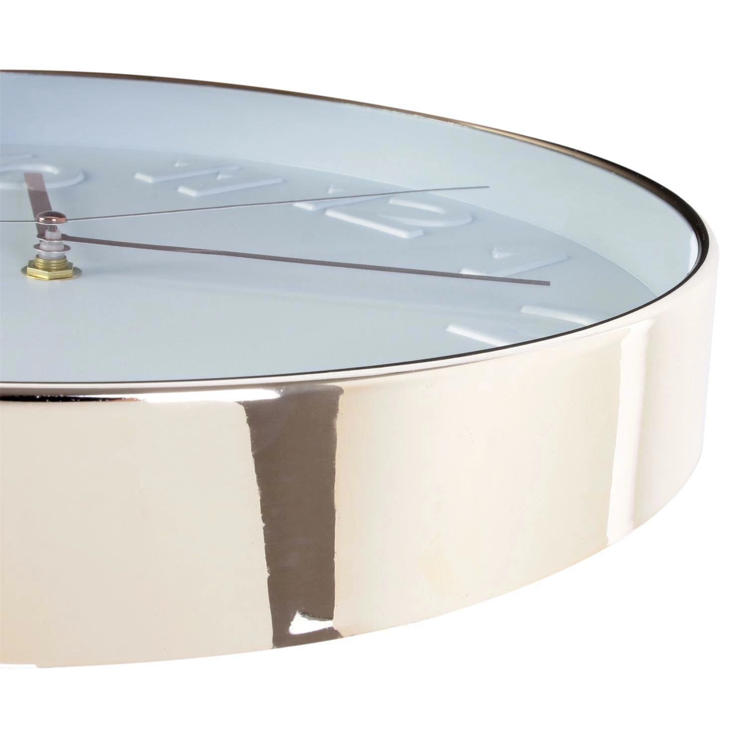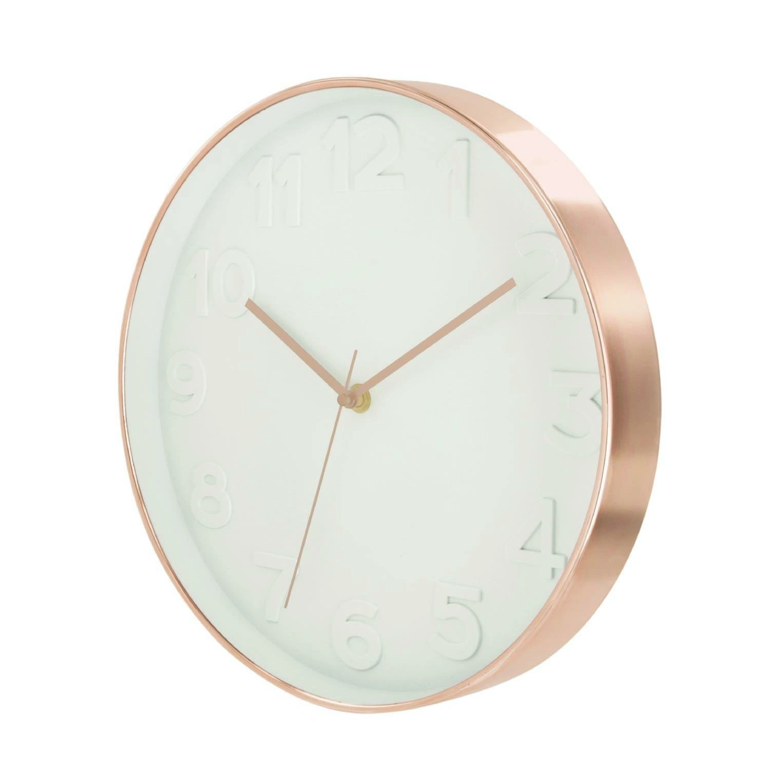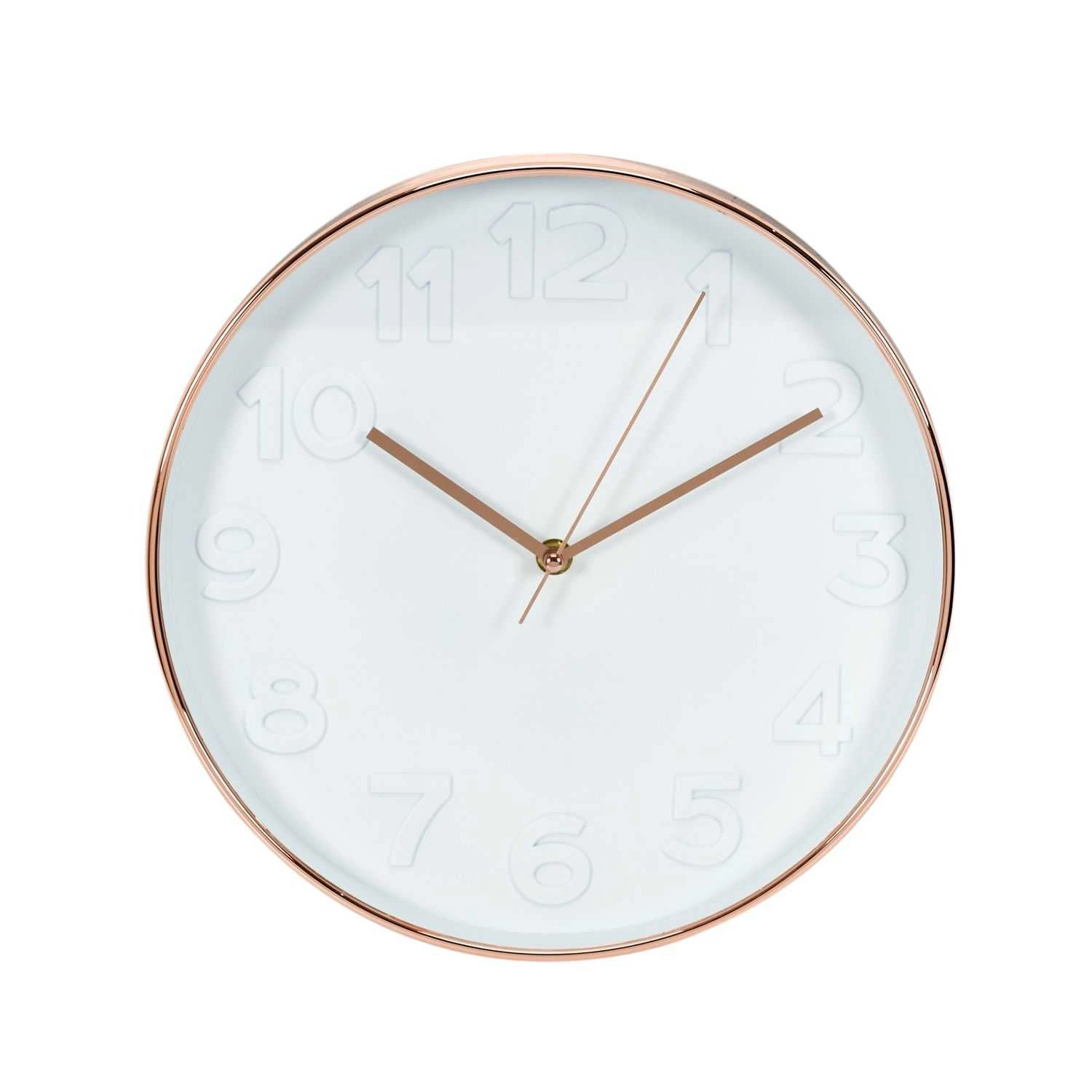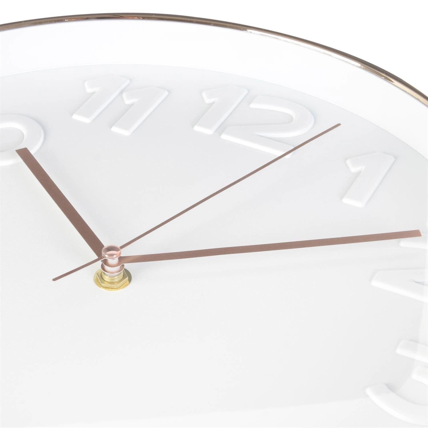 Przejrzysta tarcza, kontrastujące kolory, lekka konstrukcja wykonana z tworzywa, to właśnie cechy charakterystyczne zegara Bien. Kolor biały, komponuje się wyśmienicie z złotą barwą użytą do pokrycia ramy, wskazówek. To harmonijne połączenie odnajdzie się w większości pomieszczeń. Znaczniki godzin to subtelne białe cyfry, na których godzinę pokazują smukłe złote wskazówki. Zegar jest na baterię (niezałączona do zestawu)