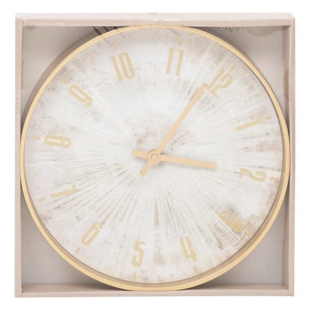 Prezentowany Zegar Izzie 30 cm w kolorze złotym to połączenie elegancji i funkcjonalności. Wykonany z aluminium, szkła i metalu zegar, z cichym mechanizmem, nie tylko pomoże Ci kontrolować czas, ale także stanie się wyjątkową dekoracją wnętrza. Złote wskazówki i cyfry na tle tekstury papieru dodają mu oryginalności i klasy. Idealny do salonu, sypialni, kuchni, a nawet do pomieszczeń użytku publicznego, takich jak sala konferencyjna, restauracja czy kawiarnia.