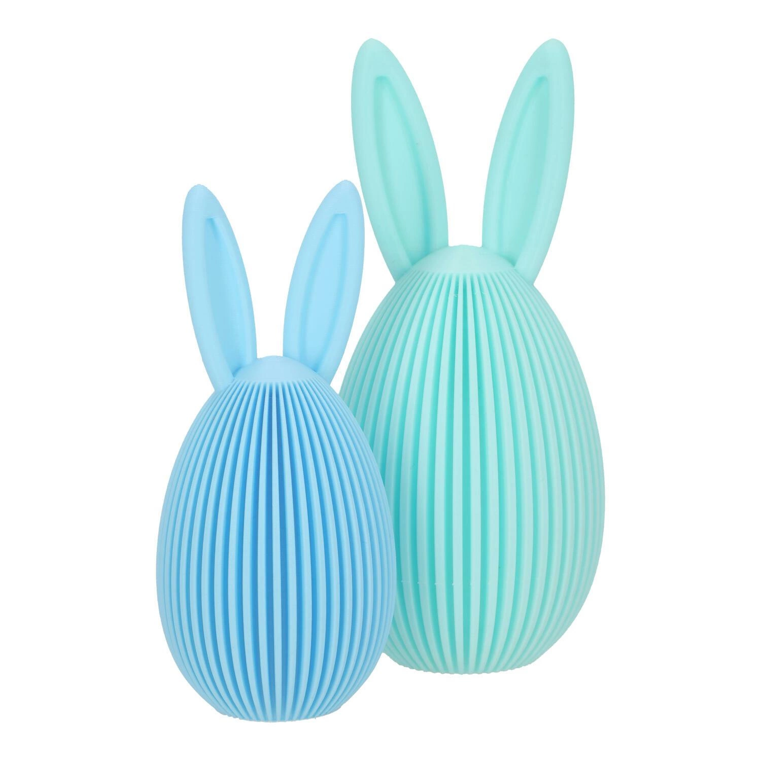 Zestaw 2 figurek wielkanocnych jajek Intesi to stylowa propozycja dekoracyjna, która wprowadzi do wnętrza wyjątkowy, świąteczny klimat. Owalne jajka o wysokości 17 cm zostały wykonane z trwałego tworzywa sztucznego, co zapewnia im odporność na uszkodzenia i pozwala na wykorzystanie zarówno w domu, jak i na zewnątrz. Delikatne odcienie turkusu i niebieskiego doskonale komponują się z wiosennymi aranżacjami stołu, parapetu lub komody, podkreślając radosny charakter Wielkanocy.