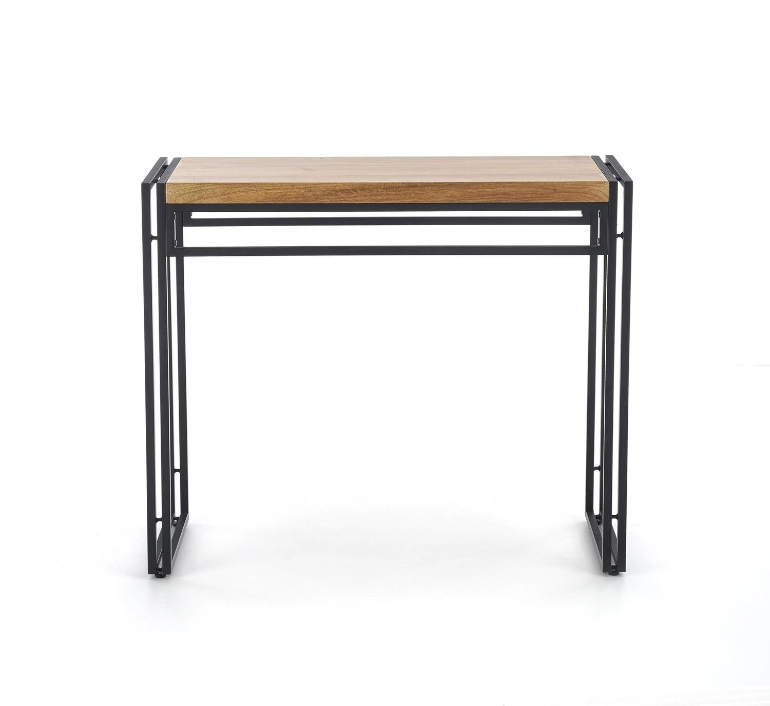 Indar industrialny stolik konsolowy marki Intesi to połączenie nowoczesnego designu i funkcjonalności w kompaktowej formie. Konsola wykonana z laminowanego blatu w kolorze naturalnego dębu oraz czarnej stalowej podstawy, zachwyca industrialnym charakterem i wysoką trwałością. Szerokość 90 cm i głębokość 35 cm czynią z niej idealny wąski stolik przyścienny, który doskonale sprawdzi się zarówno w przedpokoju, jak i salonie czy sypialni.
