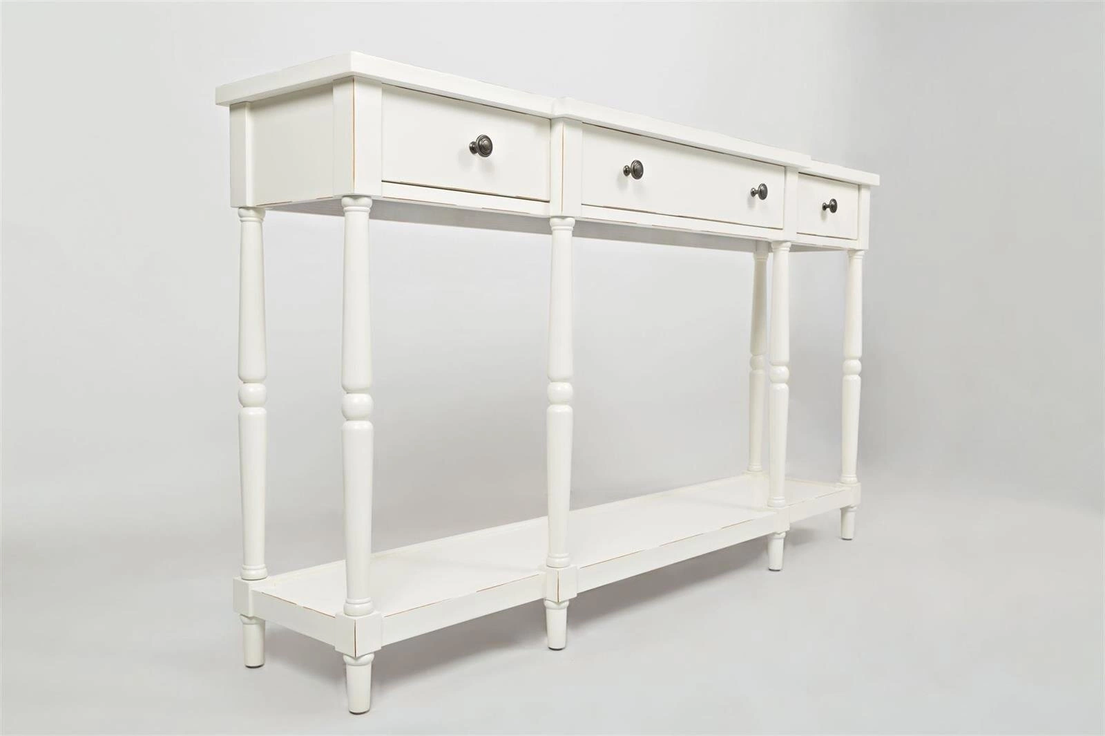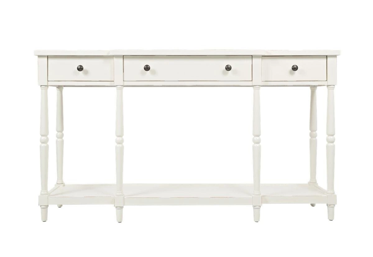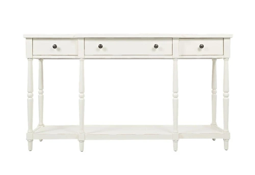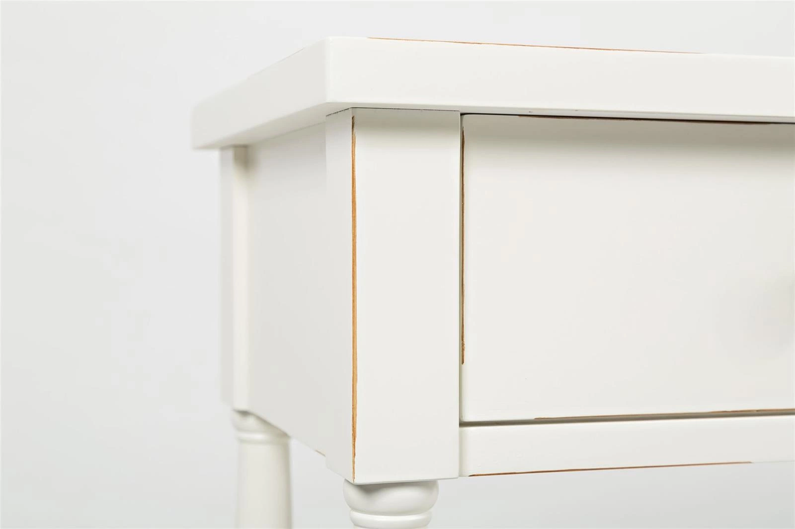 Konsola Avola posiada trzy funkcjonalne szuflady z prostymi uchwytami, które pomogą w przechowywaniu drobiazgów i utrzymaniu porządku w pomieszczeniu. Dodatkowo, posiada półkę, na której można eksponować dekoracje, rośliny lub inne przedmioty. Charakterystyczne postarzenia w postaci kornikowania w połączeniu z antyczną bielą nadają temu meblowi niepowtarzalnego uroku i sprawiają, że konsola Avola wydaje się być meblem z historią. Będzie doskonale pasować do różnych pomieszczeń - od salonu, przez sypialnię, po przedpokój czy hol. Jej elegancki wygląd i wyjątkowy styl sprawią, że wnętrze nabierze charakteru i klasy. Dzięki toczonym nóżkom, konsola prezentuje się lekko i subtelnie, dodając przestrzeni elegancji i wyrafinowania.