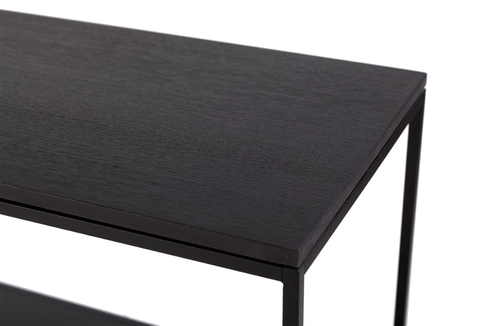 Bazę konsoli stanowi metalowa konstrukcja lakierowana na czarno. Na niej opiera się podłużny, prostokątny blat z płyty MDF pokrytej naturalnym fornirem w kolorze czarnego dębu. Jego powierzchnia została polakierowana, aby zapewnić dodatkową ochronę.