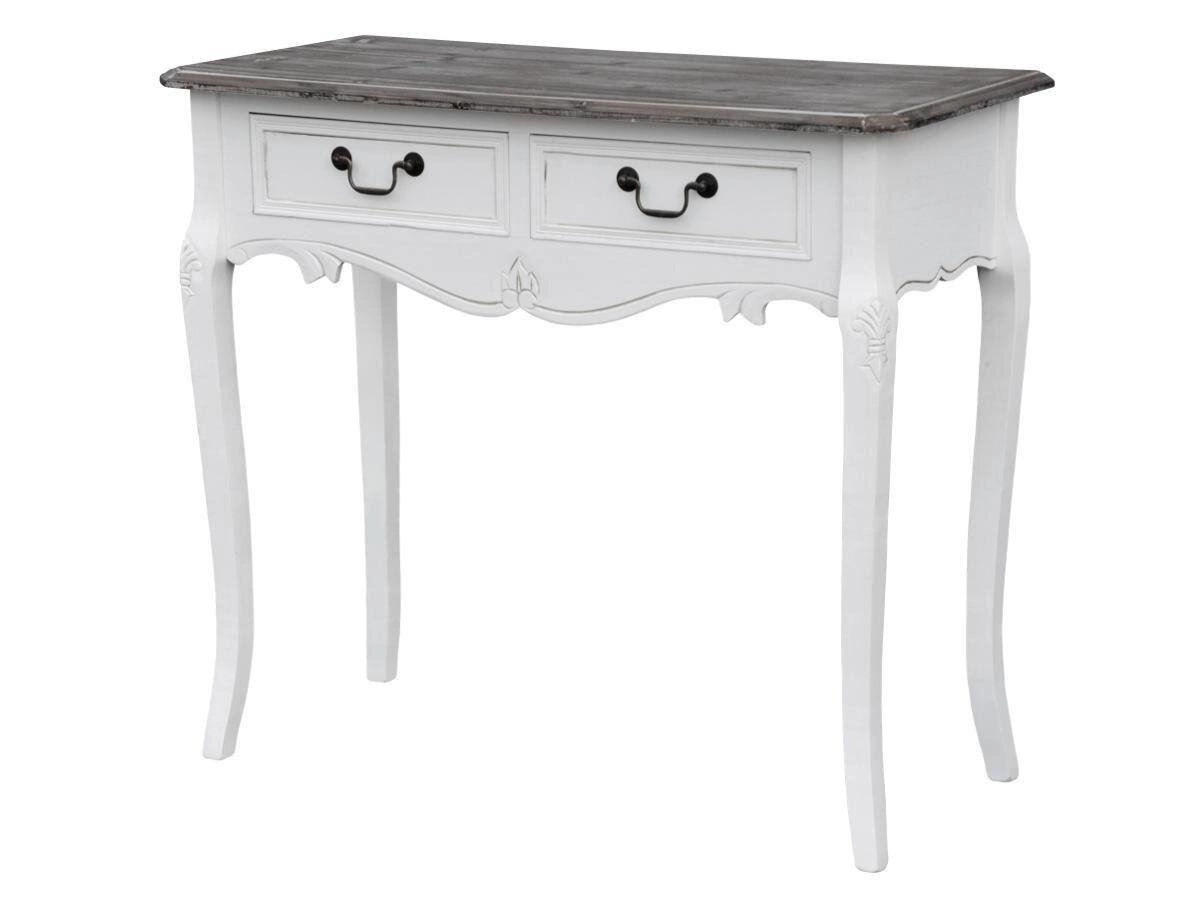 Servir - prowansalska elegancja w Twoim wnętrzu Konsola Servir to urokliwy mebel w stylu prowansalskim, emanujący delikatnością i elegancją. Wyjątkowe rzeźbienia na białym korpusie harmonijnie współgrają z przecieranym, ciemnobrązowym blatem, nadając konsoli niepowtarzalnego charakteru. Staranne wykonanie z drewna paulowni i płyty MDF gwarantuje trwałość i solidność. Gięte nóżki oraz metalowe uchwyty dodają kontrastu i nadają konsoli finezyjności. Idealnie komponuje się w różnych wnętrzach, doskonale sprawdzając się w przedpokoju, salonie lub sypialni. Dostępna w trzech różnych rozmiarach, konsola Servir umożliwia dopasowanie do indywidualnych preferencji i potrzeb przestrzeni. Konsola jest praktycznym rozwiązaniem nie tylko pod względem estetyki, ale także funkcjonalności. Posiada szuflady, które nie tylko dodają uroku, ale również stanowią praktyczne miejsce do przechowywania. Łatwa w utrzymaniu czystości, konsola Servir to propozycja dla tych, którzy cenią zarówno piękno, jak i praktyczność. Przygotuj się na mądry wybór! Konsola Servir to urokliwy mebel w stylu prowansalskim. Rzeźbienia na białym korpusie i przecierany blat nadają niepowtarzalnego charakteru. Wykonana z drewna paulowni i płyty MDF gwarantuje trwałość. Gięte nóżki i metalowe uchwyty dodają finezji. Dostępność w trzech rozmiarach umożliwia dopasowanie do różnych przestrzeni.