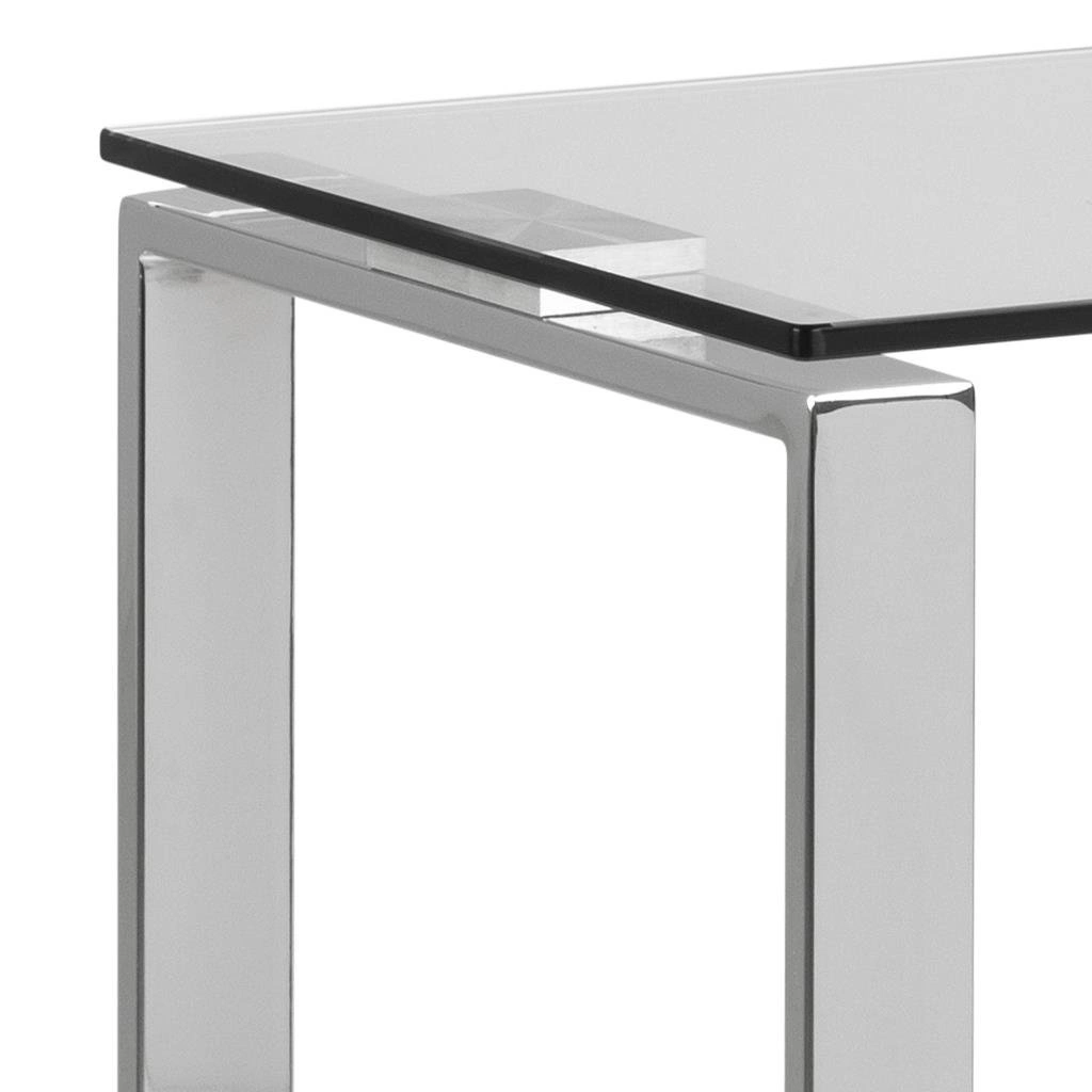 Konsola Katrine jest kwintesencją stylu Glamour. Jej wykończenie na wysoki połysk sprawia, że wygląda ona bardzo nowocześnie. Szklany blat konsoli został posadowiony na metalowej chromowanej ramie. Stolik konsolowy bardzo dobrze komponuje się w otoczeniu luster. Waga: 16,2 kg.