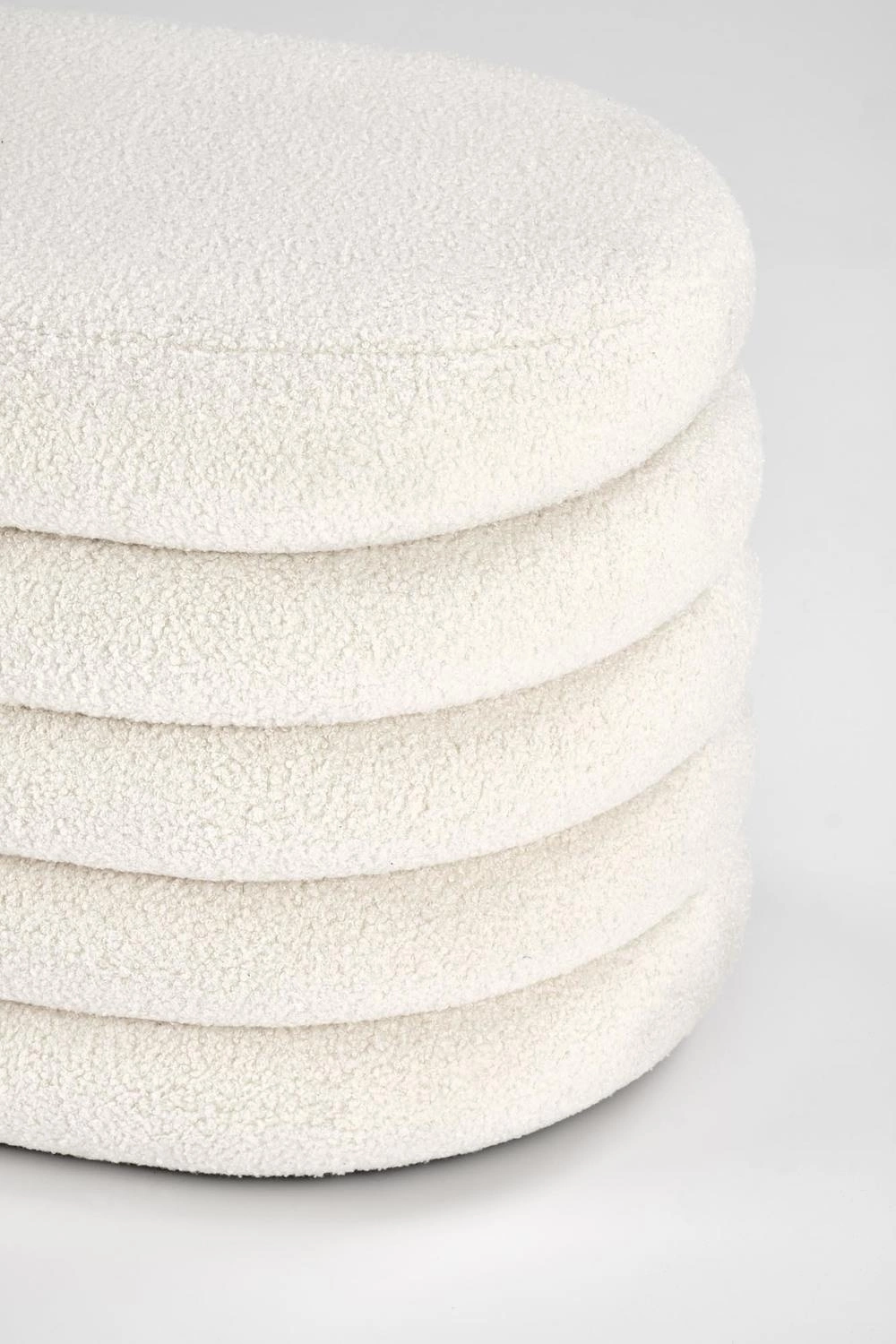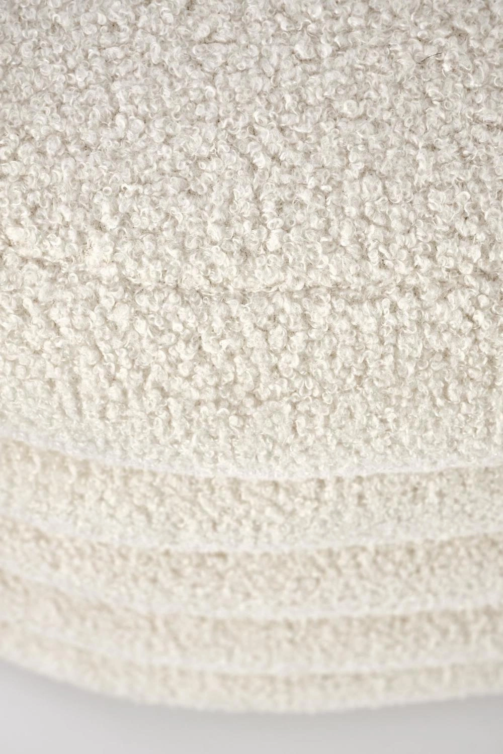 - Kremowa tkanina bouclé – miękka i przyjemna w dotyku, nadaje wnętrzu ciepła i elegancji