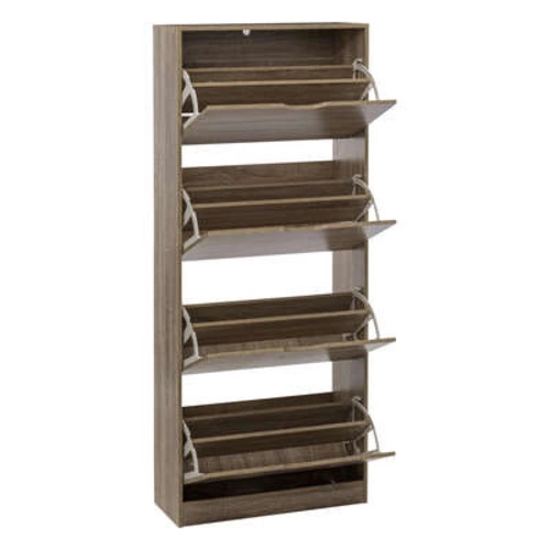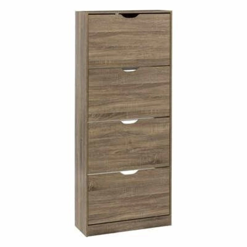 Szafka na buty Tiro Minimalistyczna i elegancka szafka na buty Tiro to idealne rozwiązanie do przechowywania w każdym przedpokoju. Z czterema szufladami, aby pomieścić aż 24 par butów, ta szafka wykonana z MDF zapewnia wygodne wycięcia na frontach zamiast uchwytów. Co więcej, posiada 2 regulowane poziomy na szufladę, aby dopasować rozmiar buta. Nowoczesna szafka na buty Tiro to modny dodatek do każdego przedpokoju. Fachowo wykonana z elementów MDF dla lekkiej i wytrzymałej konstrukcji, szafka ta ma minimalistyczny design, który z pewnością przyciągnie uwagę Twoich gości. Dzięki czterem szufladom otwieranym do przodu, z łatwością pomieści kilka par butów - idealna do każdego przedpokoju! Dodatkowo, wygodne wycięcia ułatwiają otwieranie szafek, gdy jesteś w ruchu. Nie szukaj dalej - elegancka szafka na buty Tiro to idealny element organizacyjny dla nowoczesnego domu. O tym warto pamiętać! Dodaj eleganckie rozwiązanie do przechowywania w swoim przedpokoju dzięki szafce na buty Tiro. Uporządkowane i łatwe do znalezienia buty dzięki czterem szufladom otwieranym do przodu. W pełni skonstruowana z elementów MDF dla trwałej wytrzymałości. Łatwy dostęp i stylowy wygląd dzięki wygodnym wycięciom na frontach. Oszczędność miejsca w przedpokoju bez poświęcania stylu.