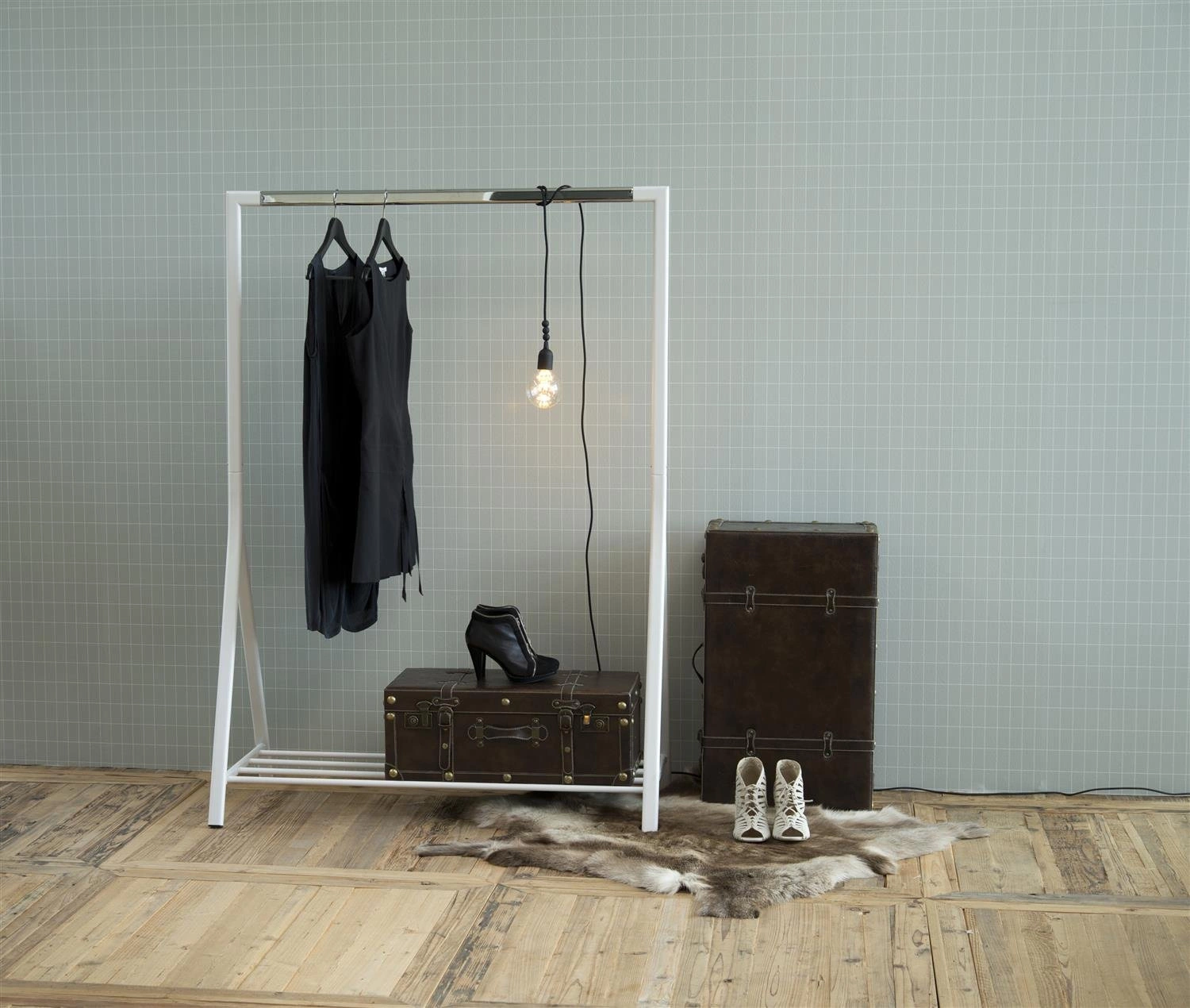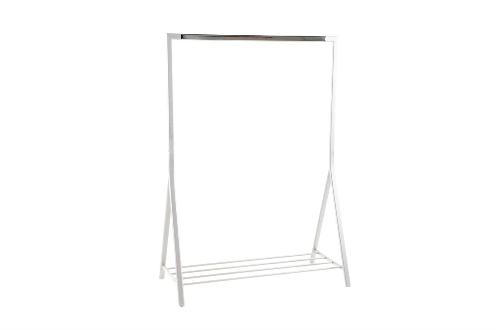 Wieszak na ubrania Brent wykonany został z chromowanego metalu w kolorze białym.Doskonale sprawdzi się w loftowych pomieszczeniach. Wieszak posiada również półkę na buty. Wieszak ten będzie doskonałym rozwiązaniem do młodzieżowego pokoju czy mniejszego mieszkania. Wieszak jest doskonałą alternatywą dla klasycznej garderoby. Wieszak ma max. udźwig do 25kg.