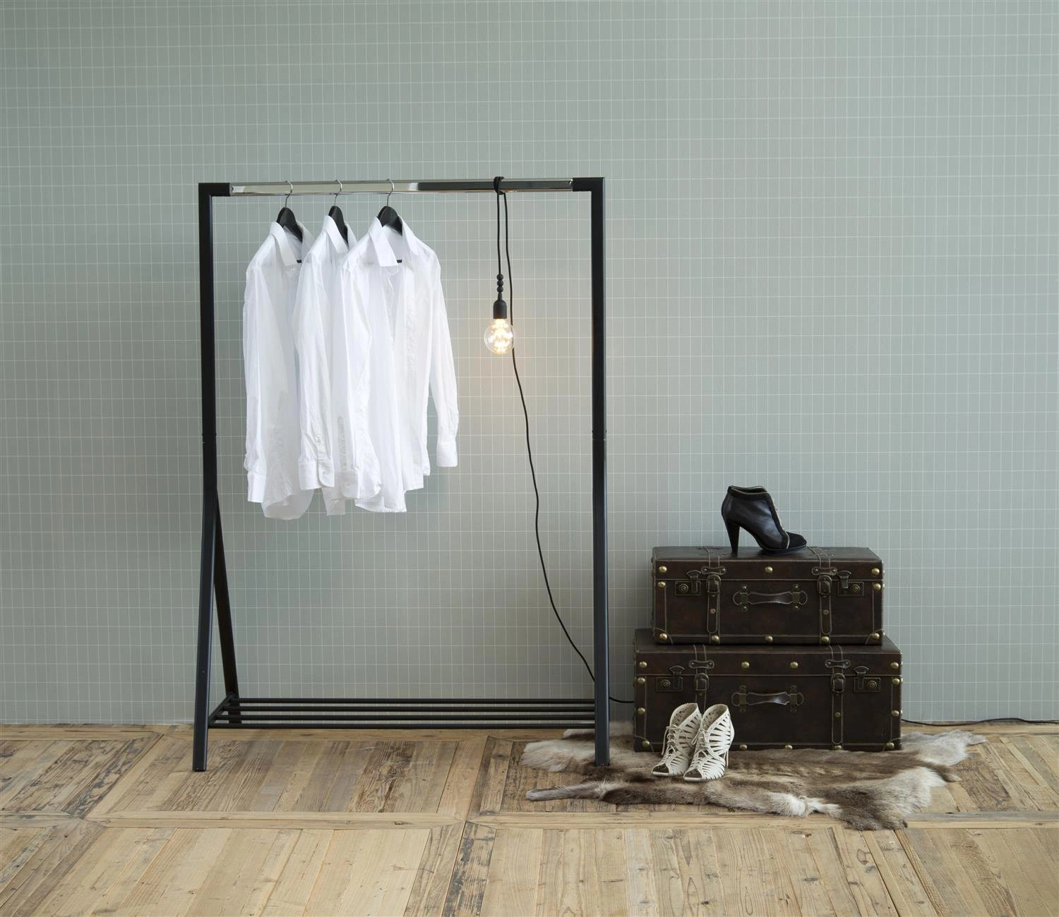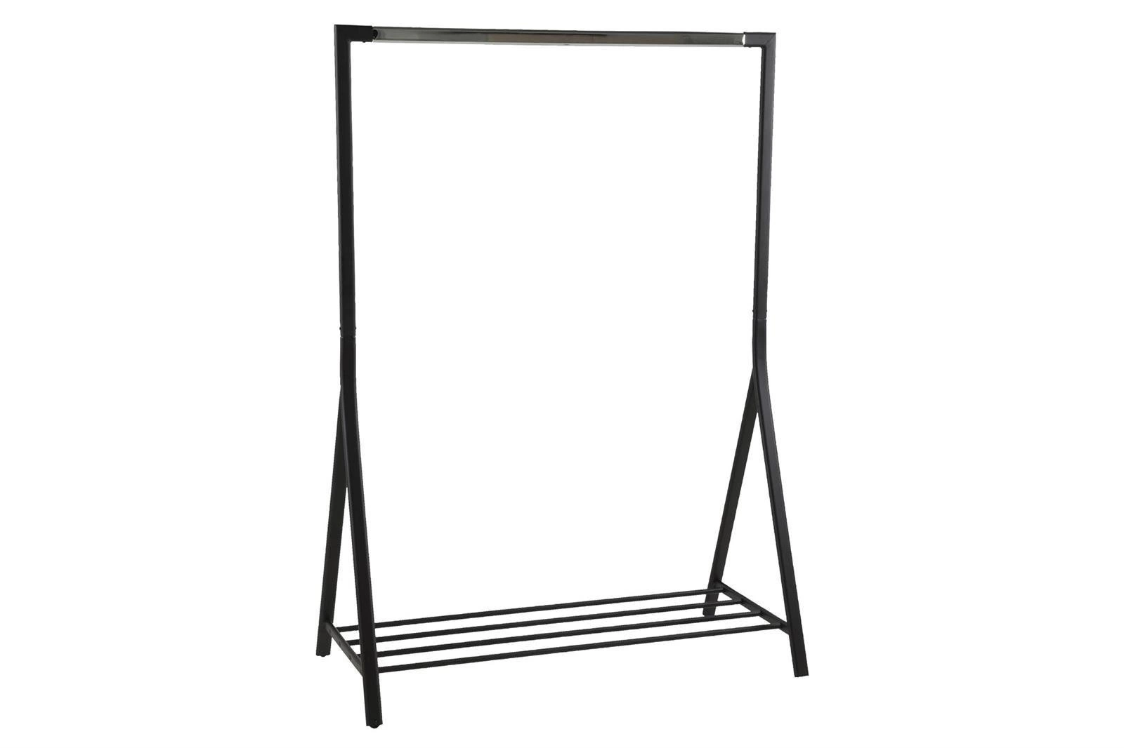 Wieszak na ubrania Brent wykonany został z chromowanego metalu w kolorze czarnym. Doskonale sprawdzi się w loftowych pomieszczeniach. Wieszak posiada również półkę na buty. Wieszak Brent to doskonała alternatywa dla klasycznej garderoby, która świetnie sprawdzi się w młodzieżowym pokoju czy mniejszych pomieszczeniach. Wieszak ma max. udźwig do 25kg.