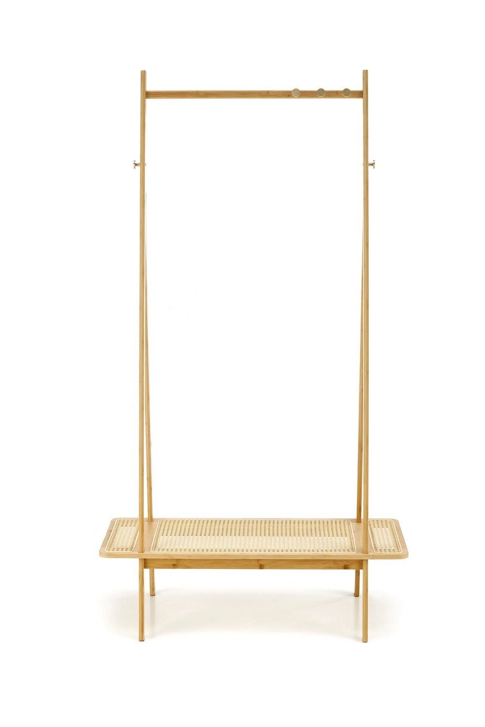 Przemyślana konstrukcja sprawia, że ten nowoczesny wieszak stojący jest nie tylko efektowny, ale przede wszystkim funkcjonalny na co dzień. Odpowiednia wysokość (168 cm) umożliwia wygodne odwieszanie płaszczy, kurtek czy torebek, a szerokość 44 cm pozwala na ustawienie wieszaka nawet w wąskim korytarzu. Dodatkowa rattanowa półka to praktyczne miejsce na przechowywanie butów, plecaków lub koszy na drobiazgi, co pozwala utrzymać porządek i ułatwia codzienną organizację przestrzeni.