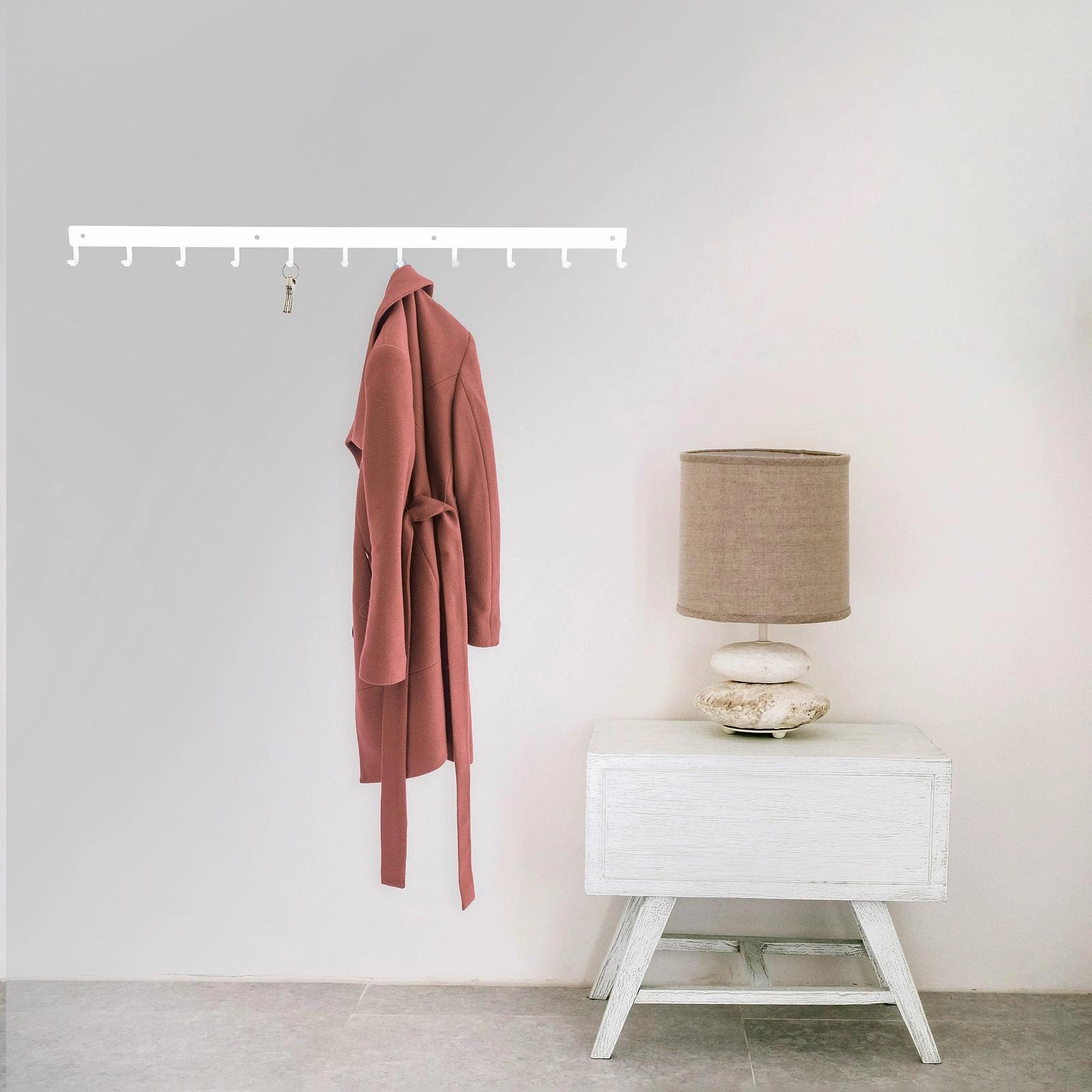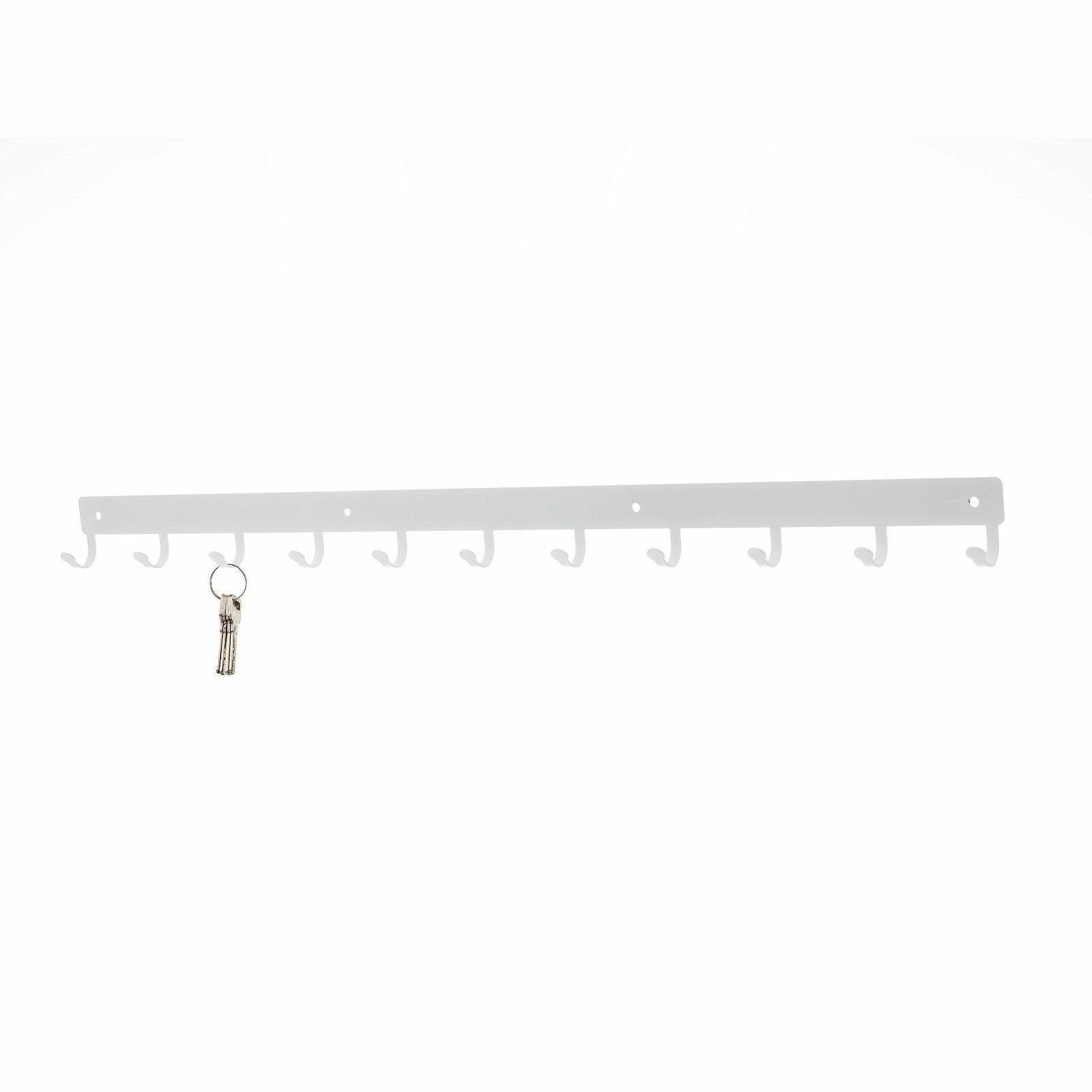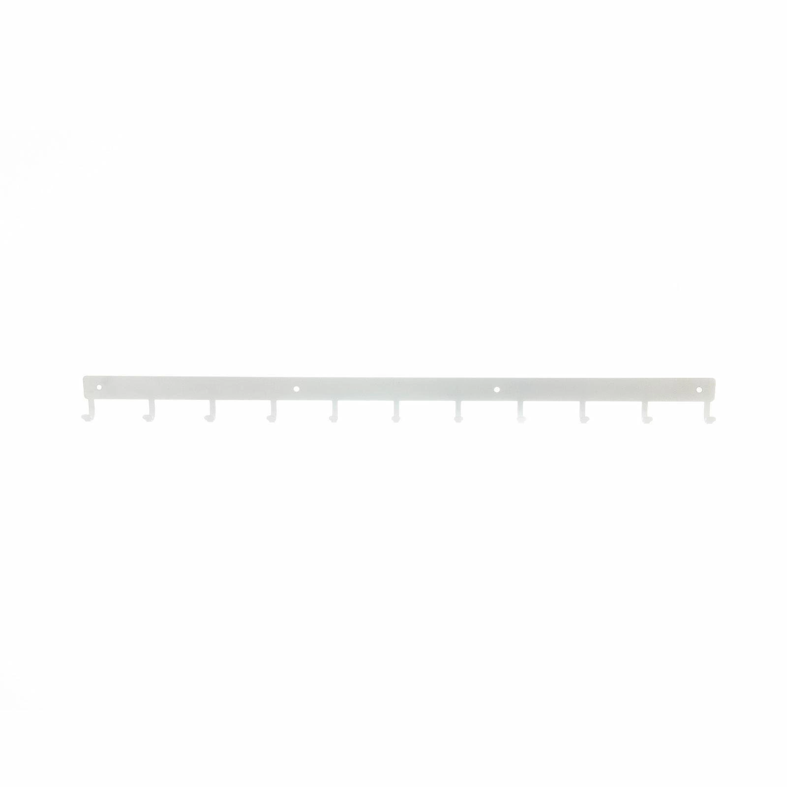 Listwa hakowa to doskonałe rozwiązanie do przedpokoju lub poczekalni. Nowoczesny stalowy wieszak posiada aż 11 haczyków o maksymalnym obciążeniu 3kg każdy. Dzięki wycinanym laserowo, a zarazem wytrzymałym, haczykom listwa jest idealna do przechowywania na niej torebek, kluczy lub odzieży. Produkt jest malowany proszkowo co za tym idzie jest łatwy w czyszczeniu oraz odporny na zarysowania. Dodatkową zaletą jest matowe wykończenie które dodaje klasy oraz elegancji. Listwa hakowa jest dostępna w dwóch kolorach dzięki czemu mamy więcej możliwości aranżacji wnętrza. Maksymalne obciążenie listwy to 33kg. Do wieszaka załączany jest zestaw montażowy, który składa się z kołków, zaślepek i śrubek. Wysokość: 5,5cm Szerokość: 80cm.