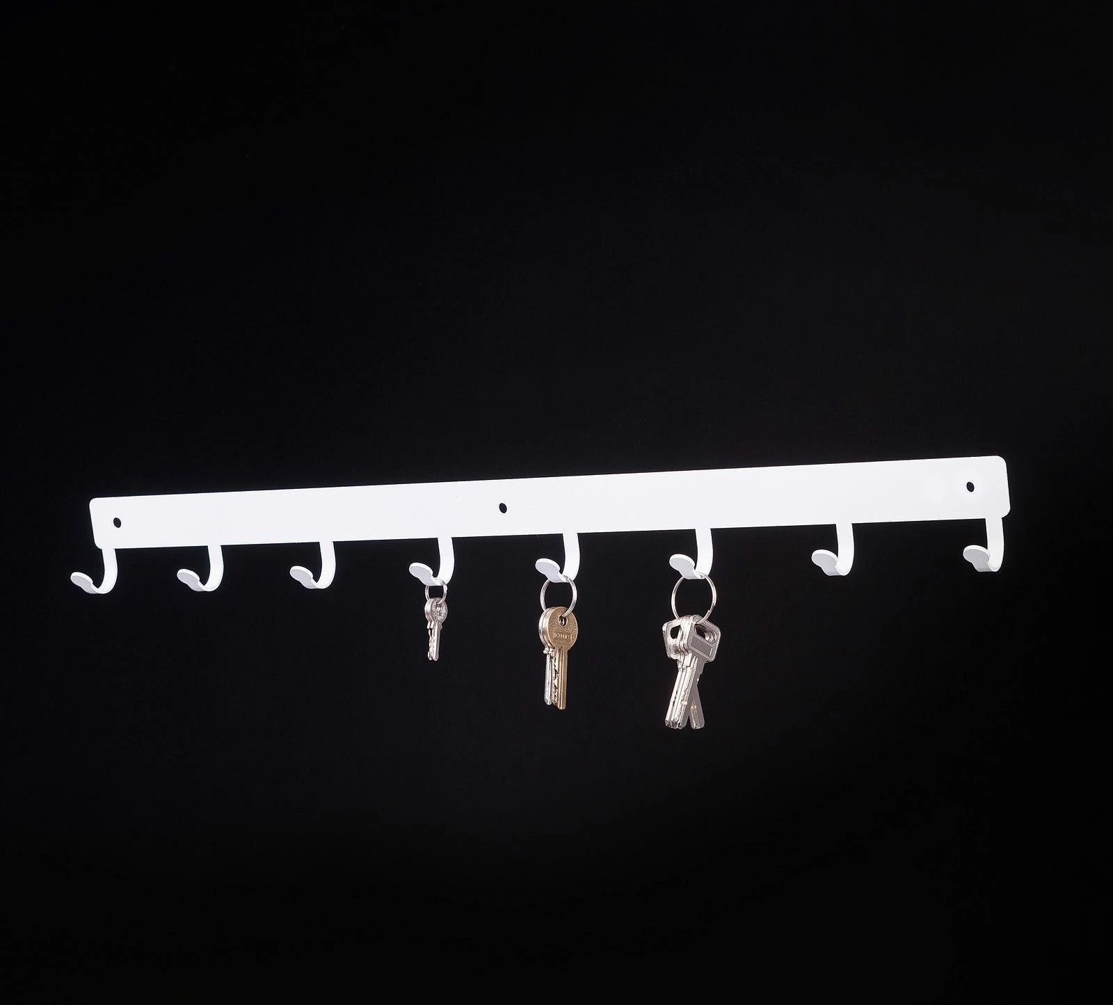 Listwa hakowa to doskonałe rozwiązanie do przedpokoju lub poczekalni. Nowoczesny stalowy wieszak posiada aż 8 haczyków o maksymalnym obciążeniu 3kg każdy. Dzięki wycinanym laserowo, a zarazem wytrzymałym, haczykom listwa jest idealna do przechowywania na niej torebek, kluczy lub odzieży. Produkt jest malowany proszkowo, co za tym idzie jest łatwy w czyszczeniu oraz odporny na zarysowania. Dodatkową zaletą jest matowe wykończenie które dodaje klasy oraz elegancji. Listwa hakowa jest dostępna w dwóch kolorach dzięki czemu mamy więcej możliwości aranżacji wnętrza. Maksymalne obciążenie listwy to 24kg. Do wieszaka załączany jest zestaw montażowy, który składa się z kołków, zaślepek i śrubek. Wysokość: 5,5cm Szerokość: 60cm.