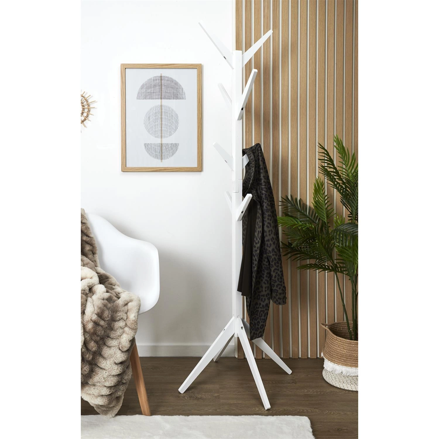 Intesi Tree to propozycja dla osób, które cenią współczesny styl oraz funkcjonalność. Jego prosty, a zarazem efektowny kształt inspirowany formą drzewa sprawia, że staje się dekoracyjnym elementem wnętrza, podkreślając charakter nowoczesnych aranżacji. Biały kolor wieszaka doskonale komponuje się z jasnymi ścianami oraz kontrastuje z żywą kolorystyką dodatków, dodając pomieszczeniu lekkości i świeżości.
