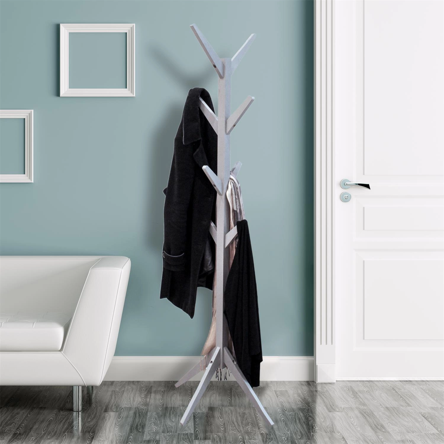 Wieszak stojący Intesi Tree to nowoczesny akcent do przedpokoju lub garderoby, który łączy funkcjonalność z estetyką. Został wykonany z trwałego drewna w modnym, szarym kolorze, a jego imponująca wysokość 177,5 cm pozwala wygodnie zawiesić kurtki, płaszcze czy torby. Stabilna podstawa o szerokości i głębokości 64 cm gwarantuje, że wieszak bez trudu utrzyma nawet większą liczbę ubrań, nie zajmując przy tym zbyt wiele miejsca.