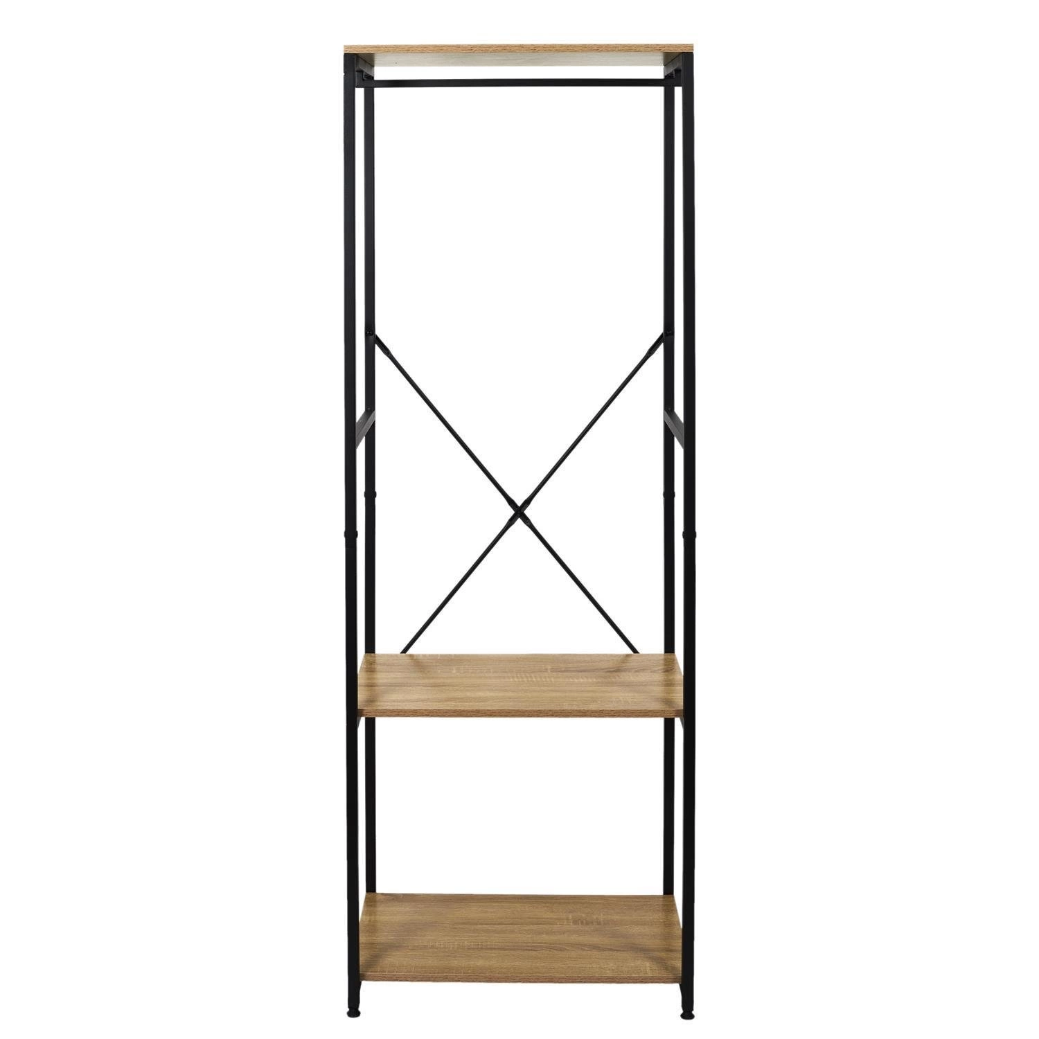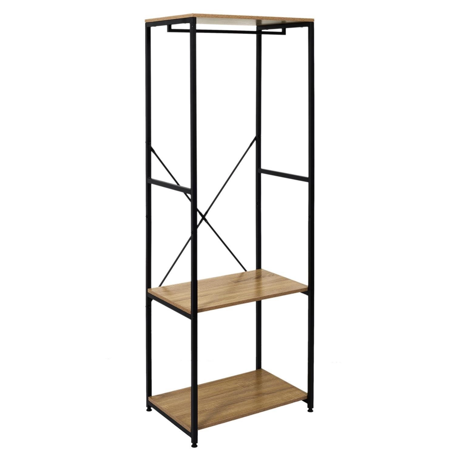 Garderoba Lukis to idealny mebel do przedpokoju lub uzupełnienie garderoby. Wieszak/garderoba Lukis to połączenie dwóch pojemnych półek i wieszaka, na których spokojnie zmieszczą się wszystkie najpotrzebniejsze rzeczy. Lukis ma formę ustawnej bryły, dzięki czemu sprawdzi się również w mniejszych przestrzeniach, które nie mają miejsca na obszerną szafę. Całość zamknięta w efektownym szkielecie z metalu malowanego proszkowo została wykończona półkami z płyty MDF. Laminat imitujący drewno w połączeniu z metalem reprezentuje niezwykle modną stylistykę loftową.