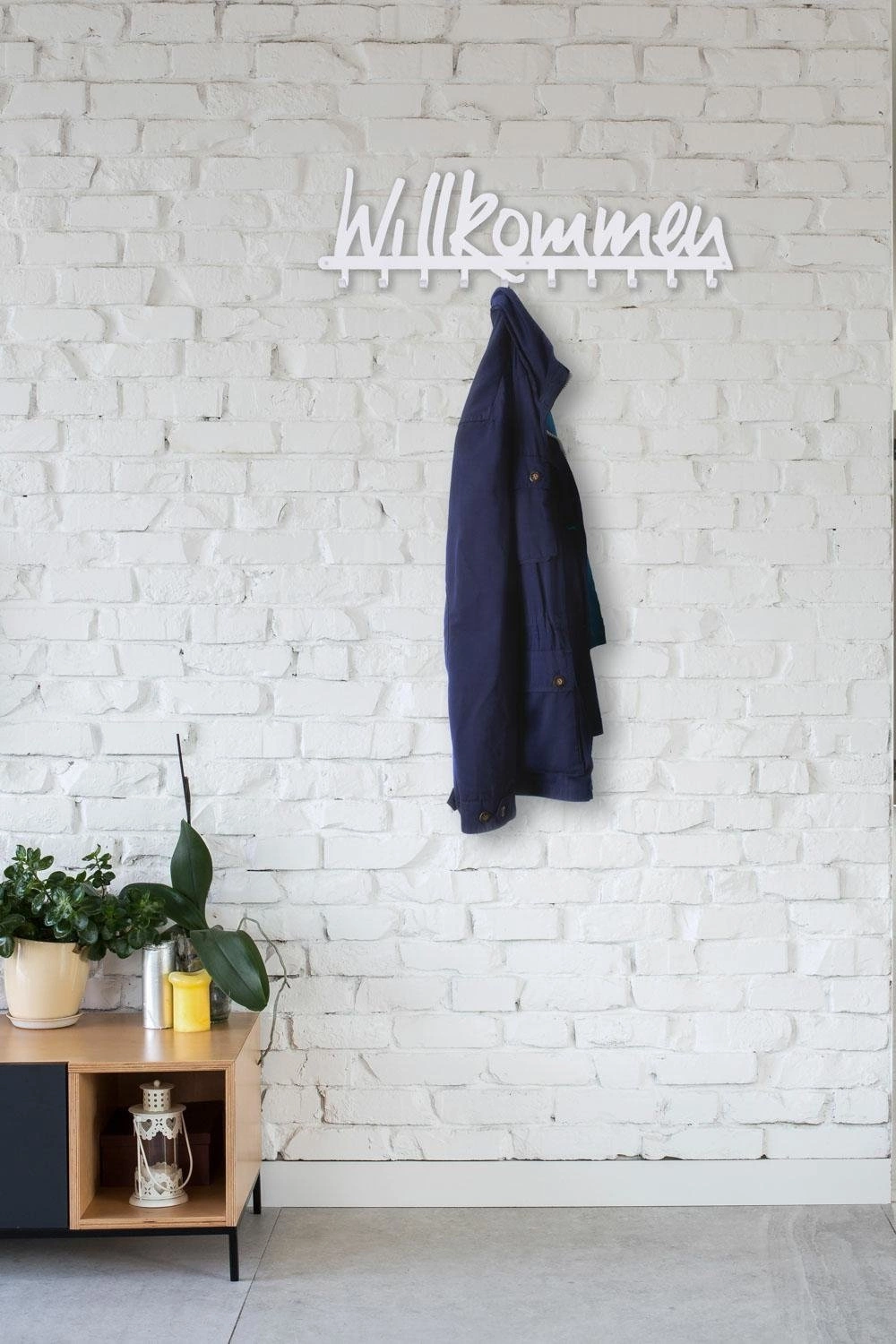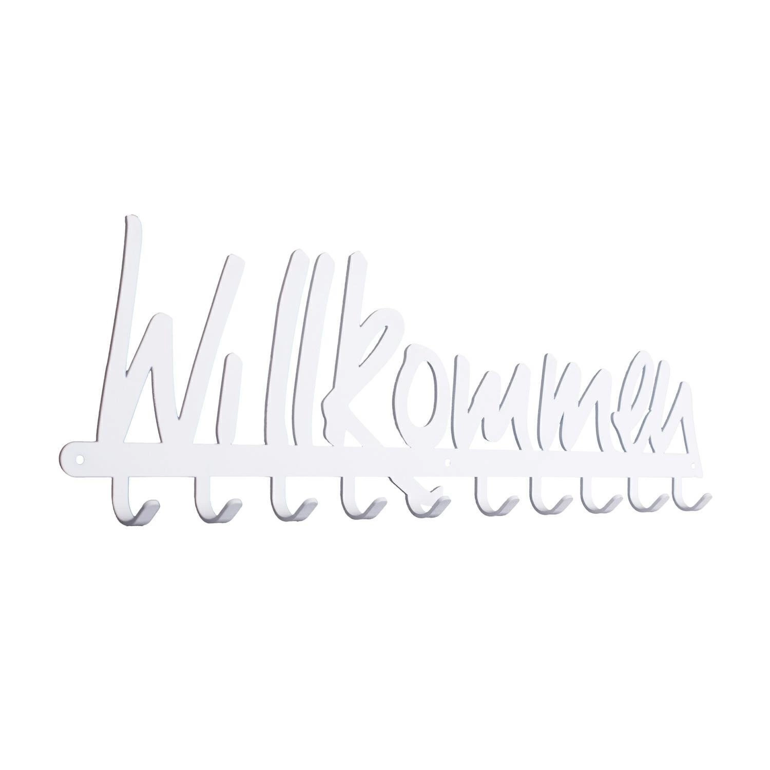 Wieszak ścienny Intesi Willkommen to nowoczesny i stylowy akcent do przedpokoju, zaprojektowany z myślą o funkcjonalności i estetyce. Wykonany z wytrzymałego metalu w ponadczasowym białym kolorze, oferuje aż 10 praktycznych uchwytów oraz dekoracyjny napis „Willkommen”, który od progu wita domowników i gości. Kompaktowa forma (wysokość 18 cm, szerokość 63 cm, głębokość 4 cm) sprawia, że doskonale sprawdzi się także w niewielkich przestrzeniach, zachowując przy tym wysoką wytrzymałość – maksymalne obciążenie aż 27 kg.