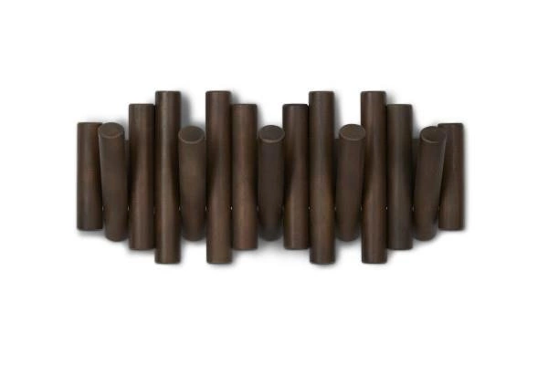 Wieszak Picket wykonany został z drewna sosnowego. Każdy uchwyt posiada udźwig do 1kg. Wieszak wpisuje się w trend na ekologiczne, naturalne dodatki do wnętrz. Cechy: - listwa ścienna z 5 uchwytami wykonana z kołków z drewna sosnowego, - każdy haczyk może utrzymać max. 2,3 kg, - nowoczesna forma, idealna do małych pomieszczeń – nieużywane haczyki można złożyć na płasko, - w komplecie znajduje się zestaw montażowy. Wymiary: 38.1 x 16.5 x 4.4 cm Kolor: orzech Materiał: drewno sosnowe Średnica haczyków do zawieszania 2,5cm