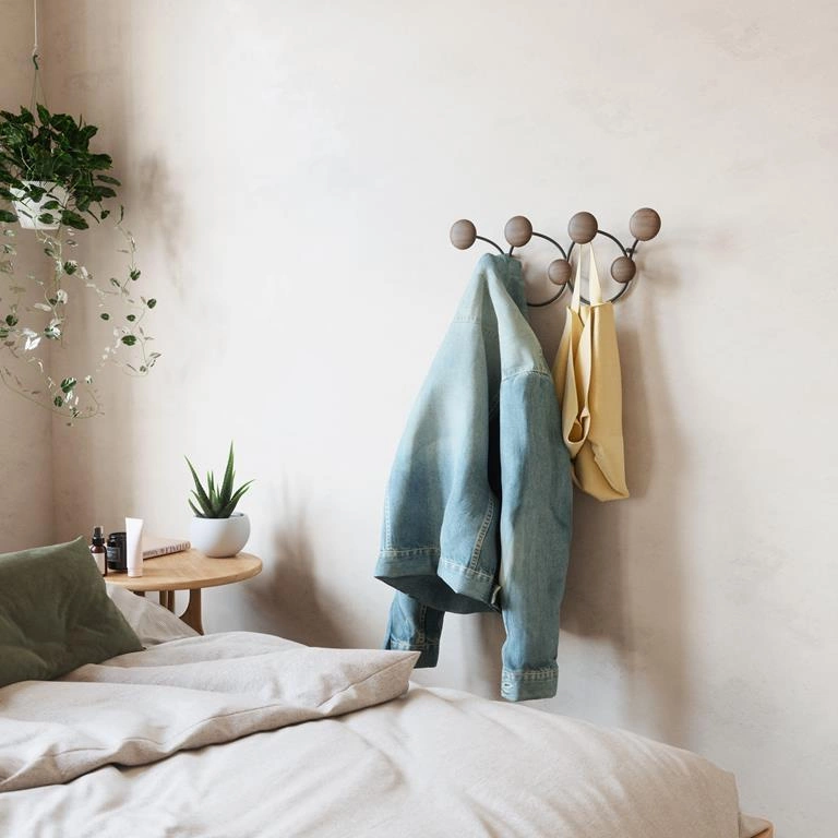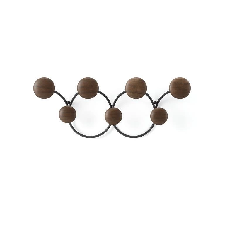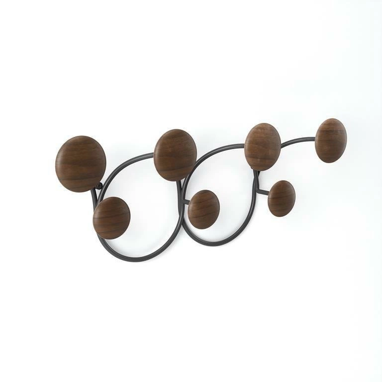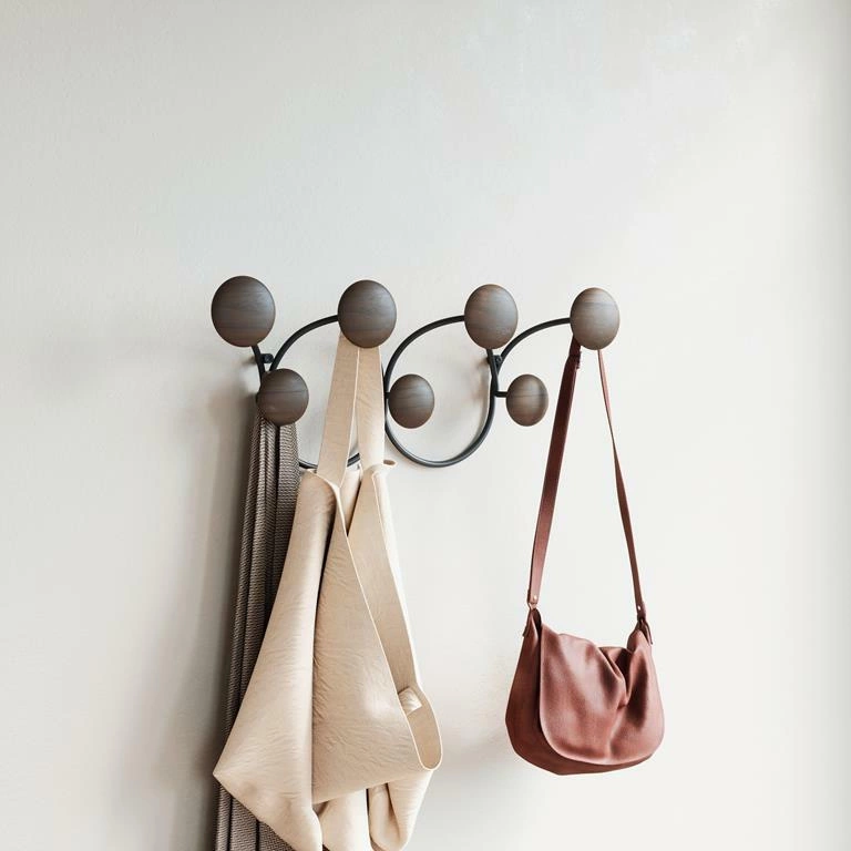 Gdy nie wiesz, jak uporządkować swój przedpokój — idealnym sposobem będzie wieszak Dotsy! Posiada on 7 wygodnych haczyków, na których można zawiesić kurtki, parasole i torebki. Bardzo estetyczna forma, składa się z metalowej konstrukcji do przykręcenia na ścianie i 7 drewnianych okrągłych elementów. To połączenie nigdy nie przestanie być modne, a jednocześnie wykonane jest w niezwykle nowoczesny sposób. Kreatywny wieszak będzie nie tylko funkcjonalnym wyposażeniem, ale i piękną osobą. Urozmaici ściany w przedpokoju, kuchni czy pokoju dziecięcym. Będzie też świetnym rozwiązaniem do gabinetu i poczekalni. Solidne wykonanie i dizajnerska forma sprawią, że każdy użytkownik pokocha wieszak ścienny Dotsy! Dostępny także w innej kolorystyce.