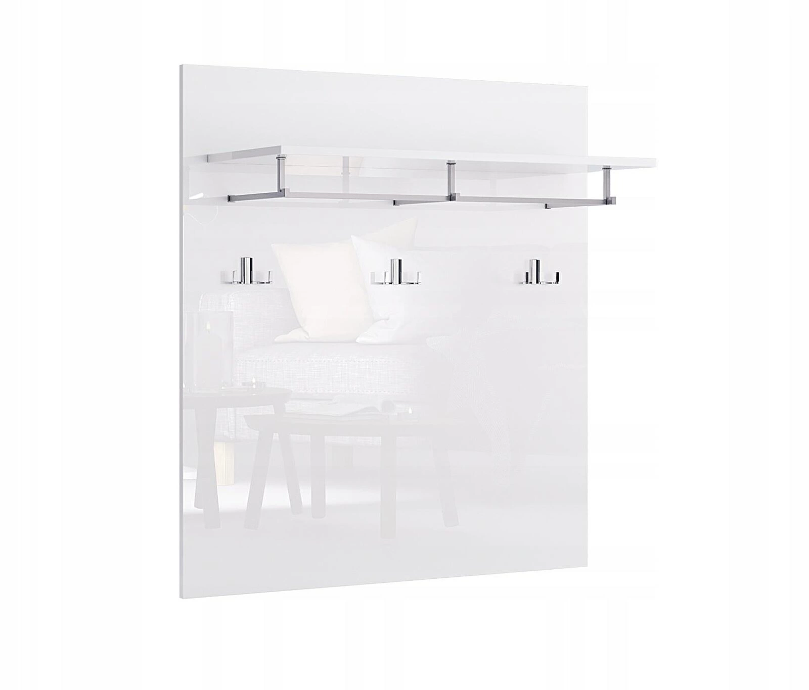 Wieszak Amanda został stworzony z myślą o tych, którzy cenią praktyczne rozwiązania w nowoczesnym stylu. Biały, lśniący front świetnie wpisuje się w jasne, minimalistyczne wnętrza, optycznie powiększając przestrzeń przedpokoju czy garderoby. Aluminiowe haczyki wyróżniają się subtelną elegancją i są odporne na codzienne użytkowanie – bez trudu utrzymują cięższe kurtki, szaliki lub torby zakupowe.