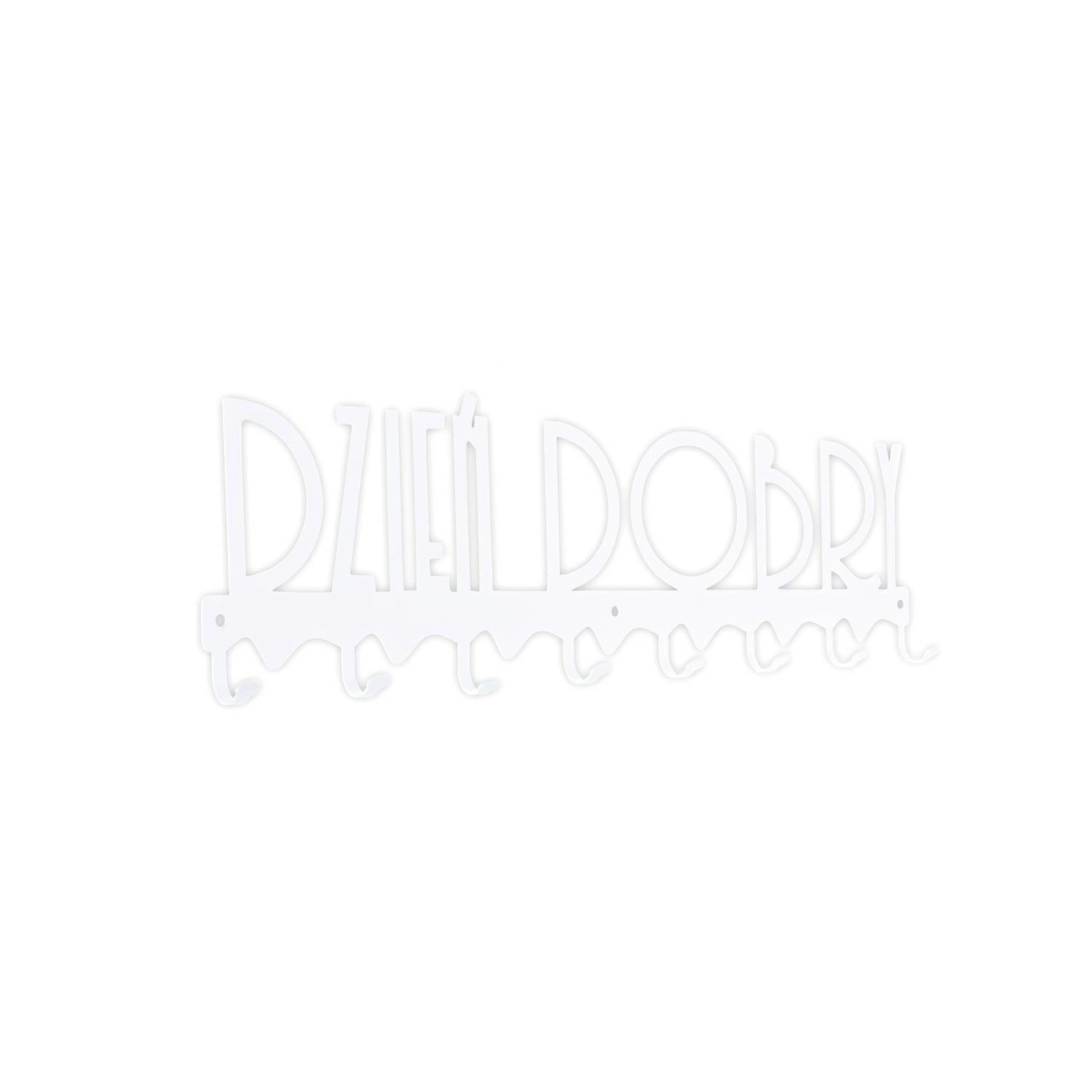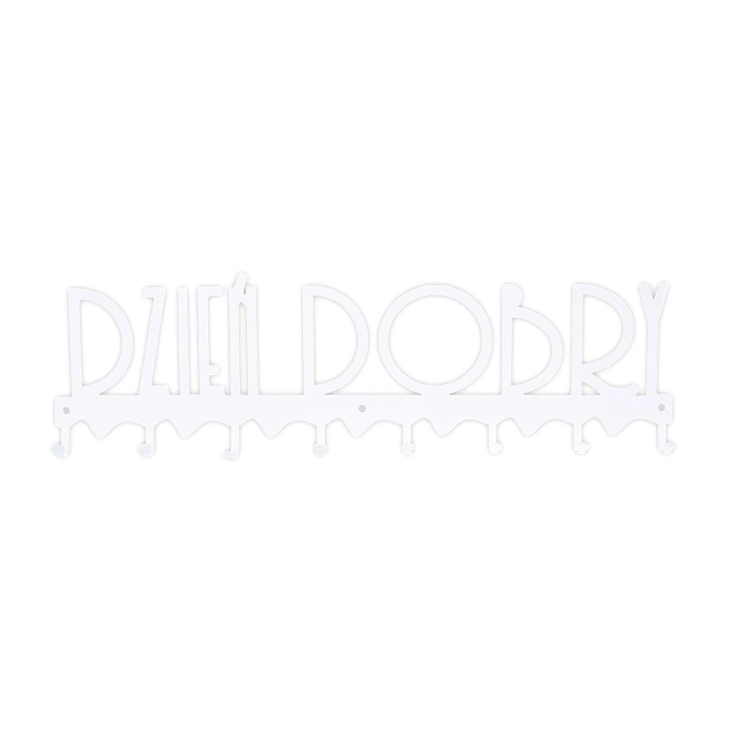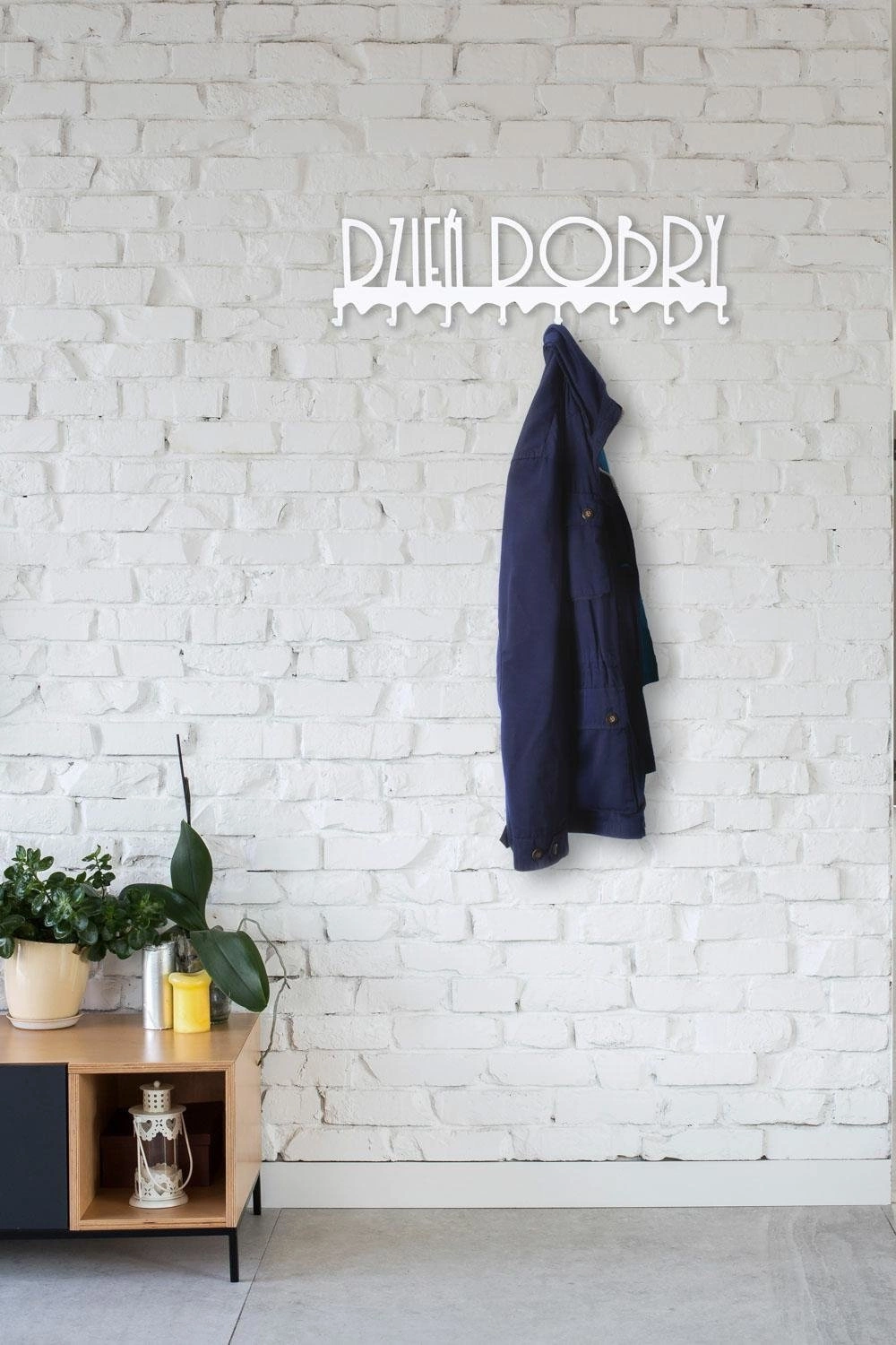 Wieszak ścienny biały Dzień dobry marki Intesi to połączenie ponadczasowego designu z funkcjonalnością, które doskonale sprawdzi się w nowoczesnym przedpokoju. Wykonany z metalu, o szerokości 60 cm i wyposażony w 8 wytrzymałych haczyków, pozwala na wygodne zawieszenie kurtek, toreb czy kluczy. Biały kolor oraz subtelny napis nadają wnętrzu lekkości, jednocześnie podkreślając industrialny styl.