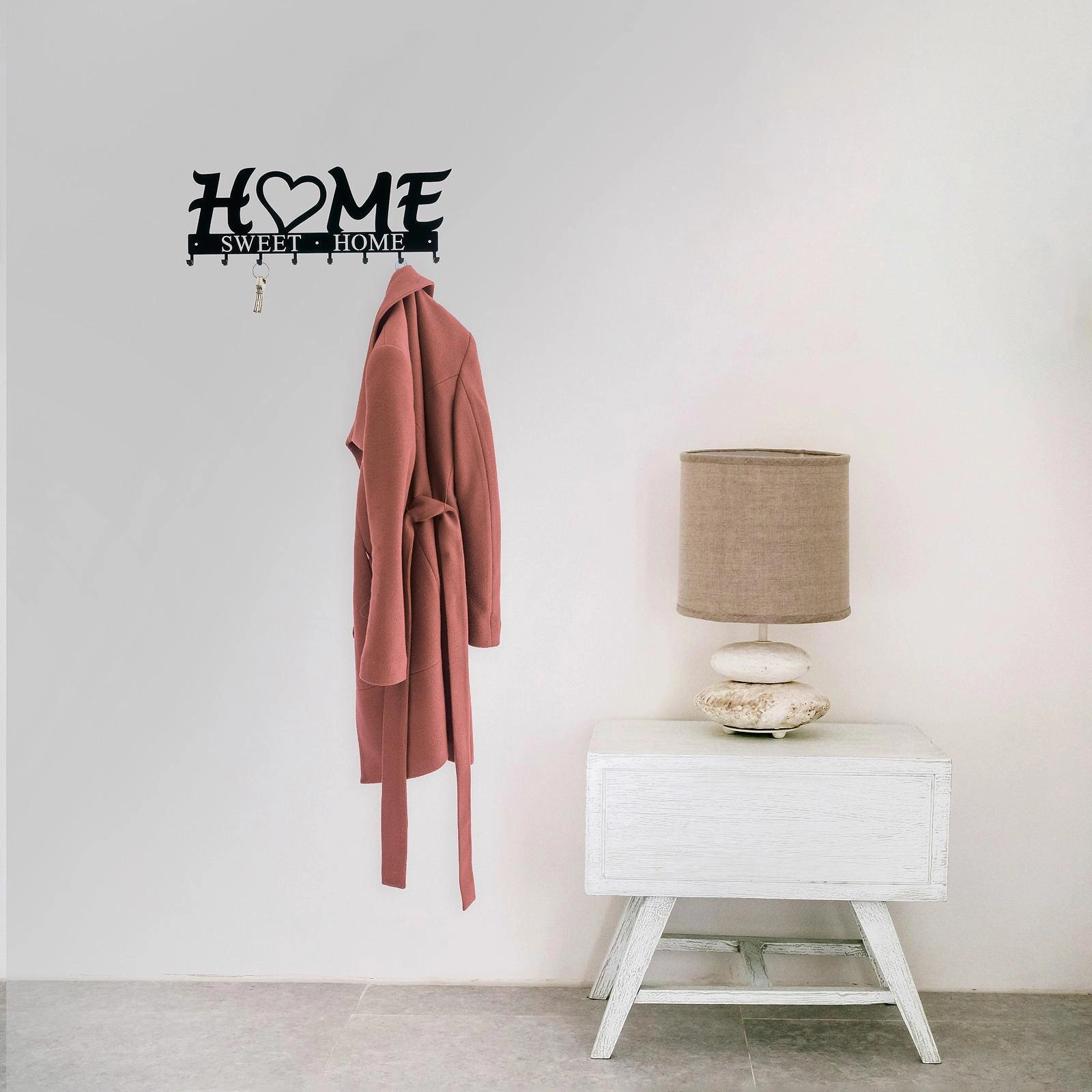 Wieszak ścienny Home Sweet Home Intesi to propozycja dla osób ceniących estetykę i porządek w swoim domu. Wyrazisty, czarny kolor i minimalistyczna forma sprawiają, że doskonale komponuje się z nowoczesnymi oraz industrialnymi aranżacjami. Dekoracyjny napis nie tylko zdobi, ale również nadaje wnętrzu przytulny charakter, witając domowników już od progu.