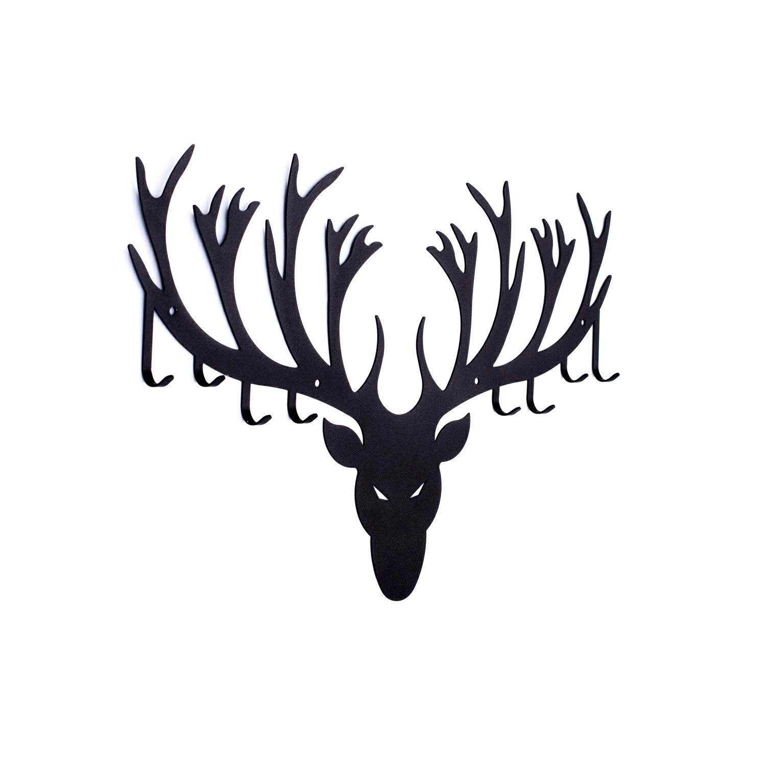 Wieszak ścienny do przedpokoju Poroże czarny marki Intesi to połączenie nowoczesnej formy z praktyczną funkcjonalnością. Wykonany z solidnego metalu, wieszak o szerokości 60 cm i wysokości 38 cm oferuje aż 8 uchwytów, które pomieszczą kurtki, torby czy klucze. Czarny, matowy kolor i oryginalny, wycinany motyw poroża sprawiają, że jest to nie tylko praktyczny wieszak ścienny, ale i wyjątkowa dekoracja ściany.